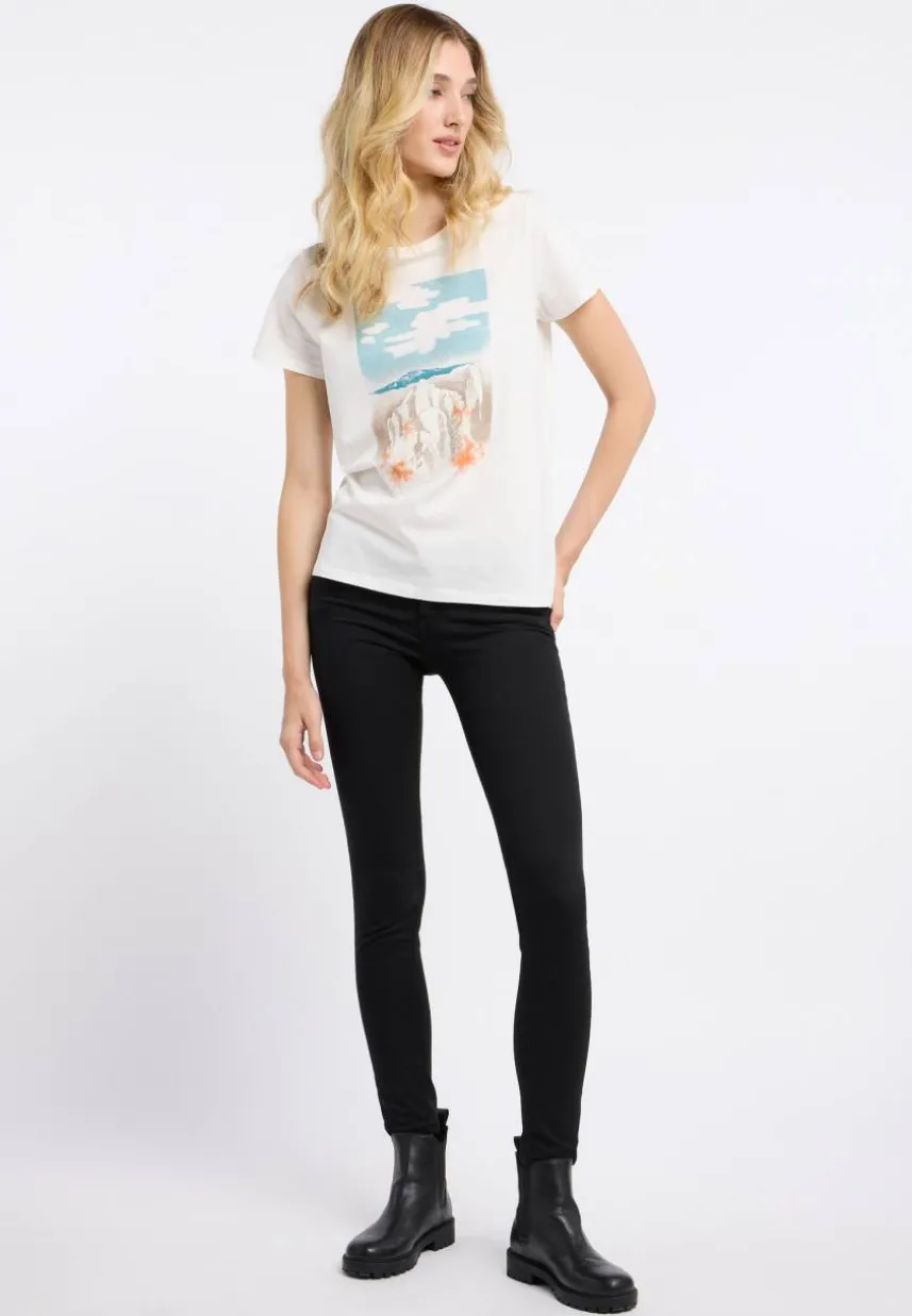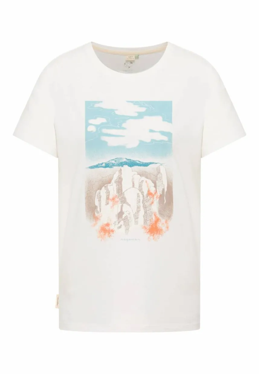 Lass dich von dem veganen T-Shirt ‚ADORI PRINT A GOTS‘ zu neuen Abenteuern inspirieren. Das wunderschöne Motiv mit von Wolken gekrönten Bergen ist in einem traumhaften Farbspektrum gedruckt.Das Shirt besteht aus weichem Jersey-Material aus 100% Bio-Baumwolle und ist komplett GOTS-zertifiziert. Mit seinem Rundhalsausschnitt, kurzen Ärmeln und geradem Saum ist es vielseitig kombinierbar und perfekt für jeden Tag.