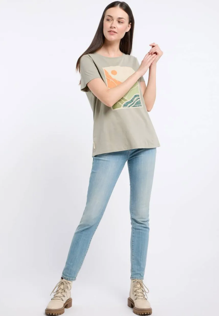 Befreie deinen Geist mit dem veganen T-Shirt ‚ADORI PRINT C GOTS‘. Der wunderschöne Druck mit stilisierten Bergen erinnert an japanische Holzschnitte. Das Shirt ist aus 100% Bio-Baumwolle und komplett GOTS-zertifiziert. Der abgerundete Ausschnitt und die kurzen Ärmel verleihen eine lässige Ausstrahlung. Ein dezentes Logo ziert den geraden Saum für den unverkennbaren ragwear-Look.
