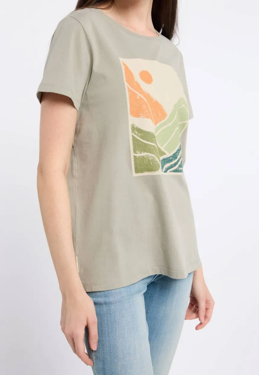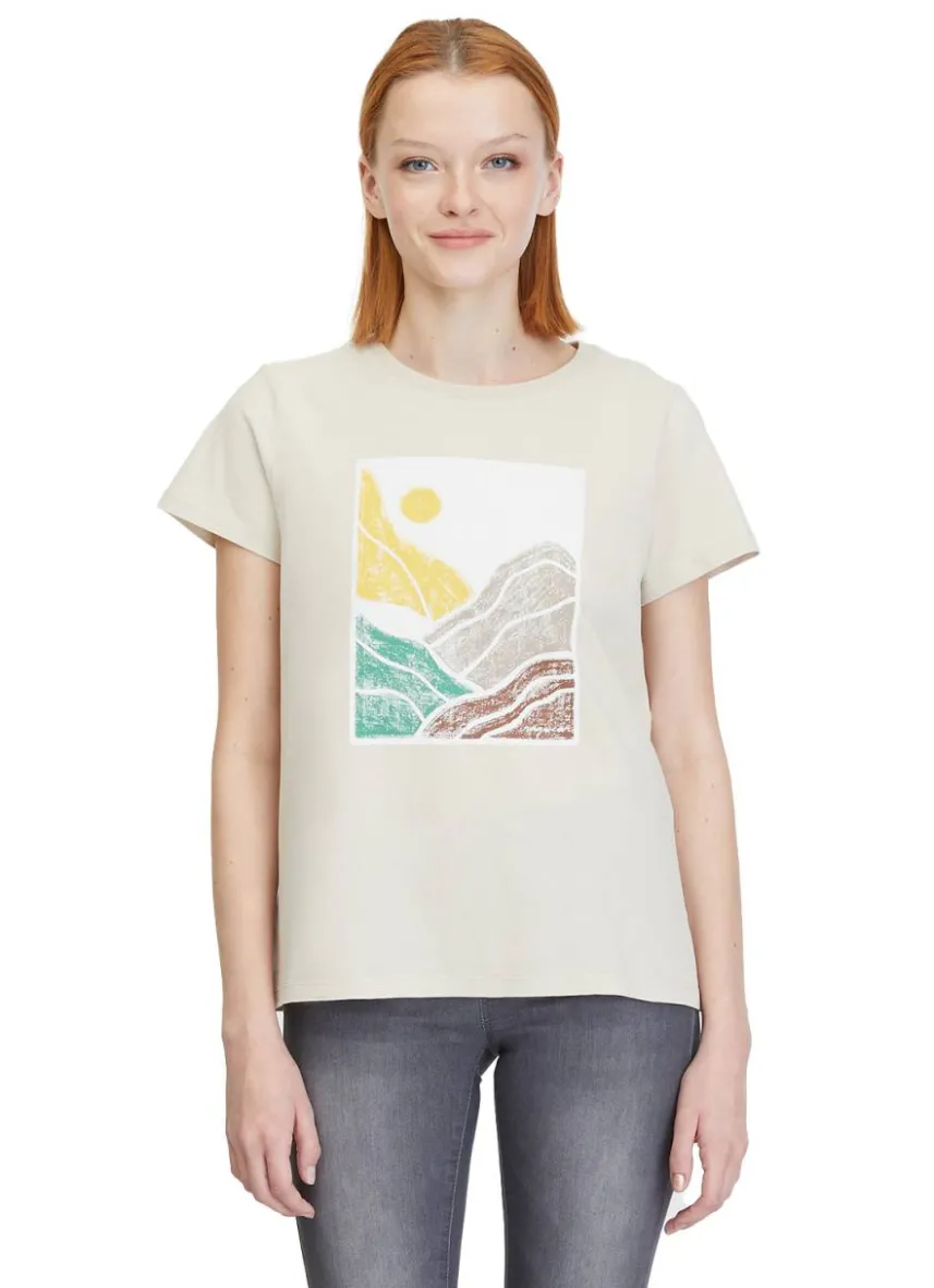 • Veganes T-Shirt mit stilisiertem Bergmotiv