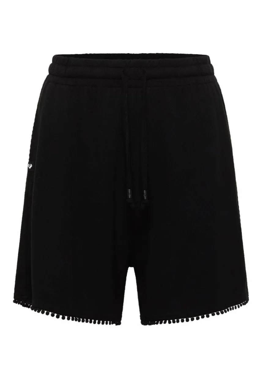 • Bequemer Schnitt mit Bommel-Rüsche am Beinabschluss
