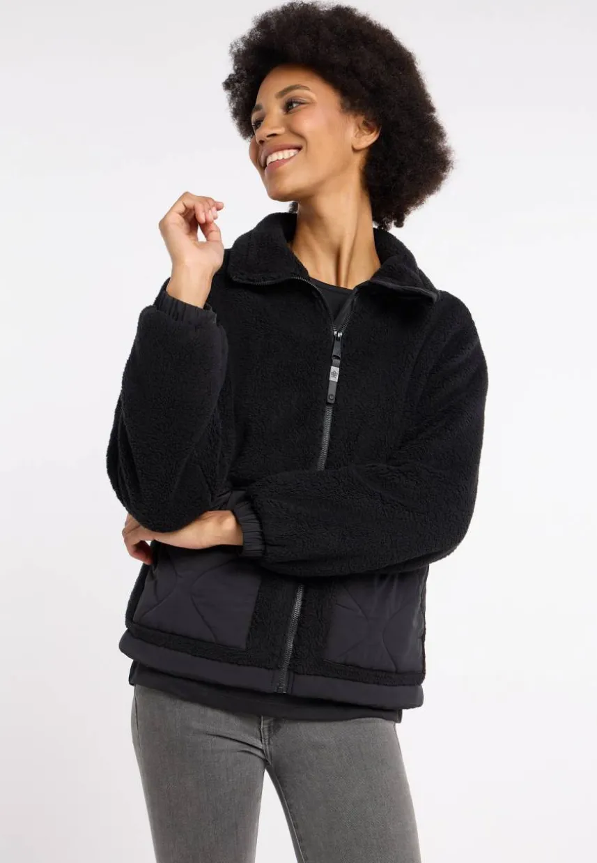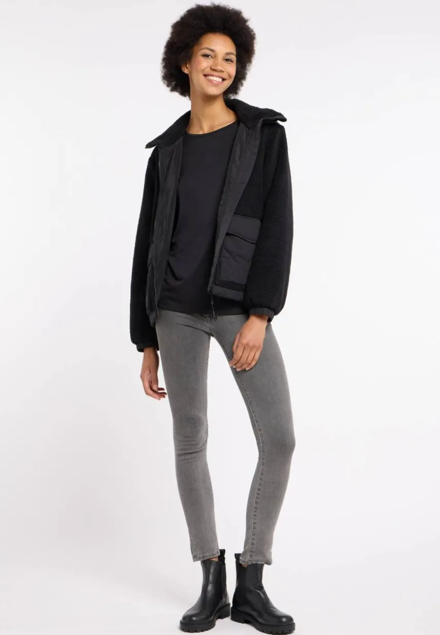 • Trendige Teddyjacke mit kontrastierenden Einsätzen