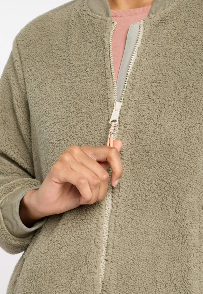 Die Teddyjacke ‚CAIRRO‘ von ragwear kombiniert lässigen College-Stil mit gemütlichem Komfort. Mit ihrem gerippten Stehkragen, der Reißverschlussleiste und den seitlichen Eingrifftaschen ist sie nicht nur praktisch, sondern auch stylisch. Die Rippstrickbündchen sorgen für Kontrast und einen sicheren Sitz. Die lockere Passform sowie der kurze Schnitt verleihen der Jacke eine moderne Note.
