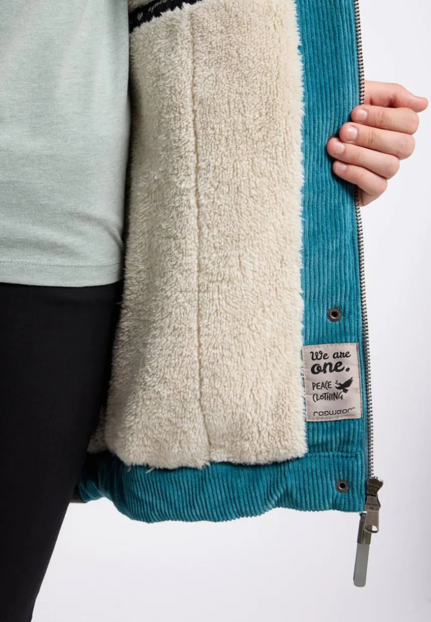 Der vegane Kurzmantel ‚CANNY CORDUROY‘ aus Cord ist dein trendiger Begleiter für die Übergangszeit. Er ist bequem geschnitten und innen mit einem kuscheligen Teddystoff gefüttert. Die große Kapuze lässt sich, ebenso wie die Taille, mit einem Kordelzug in der Weite regulieren. Seitliche Klappentaschen, innenliegende Rippbündchen an den Ärmelabschlüssen und ein durchgehender Reißverschluss mit Druckknopfblende runden das Design ab. Der Saum ist hinten verlängert und geschlitzt. Hübsche Details sind auch die Paspeln an Brust und Taschen.