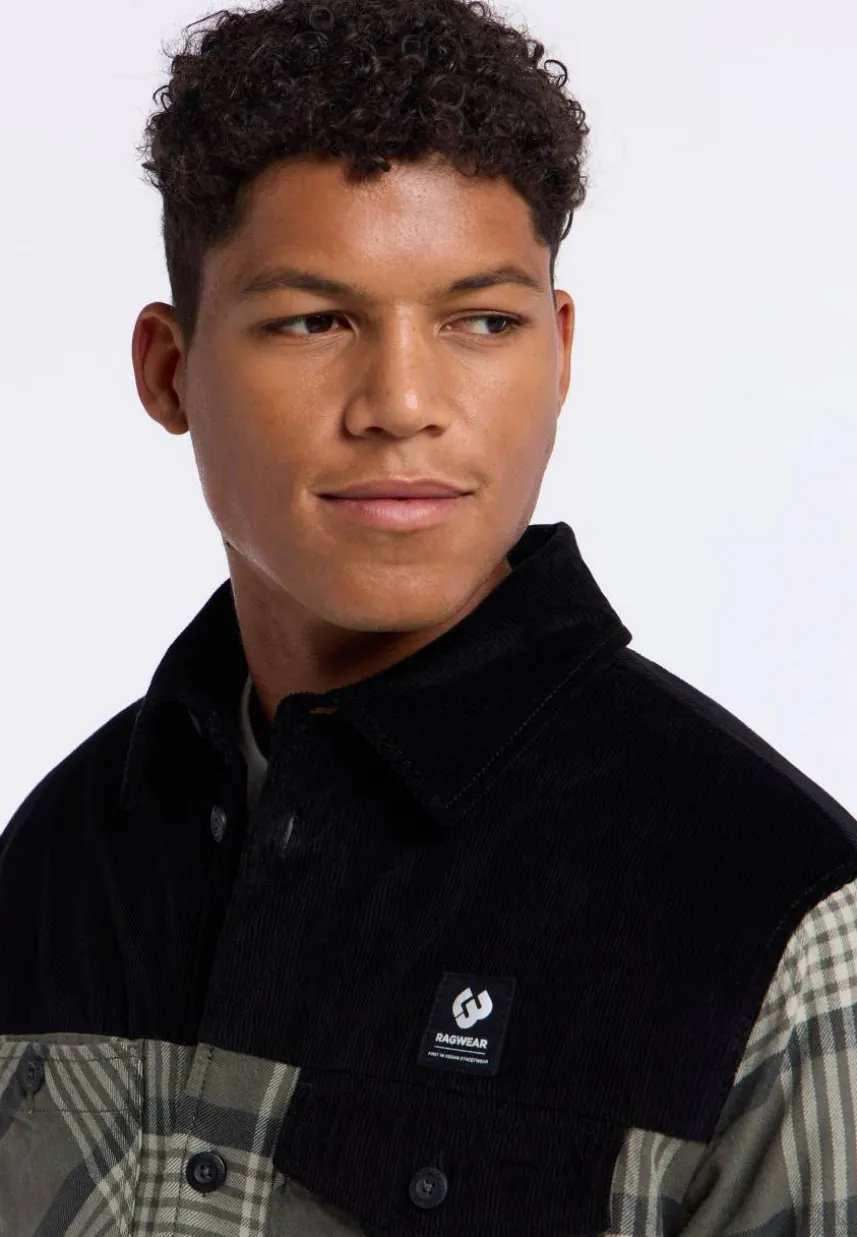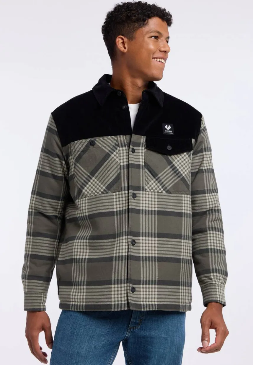 • Vegane Jacke im Holzfäller-Stil und kontrastfarbener Passe