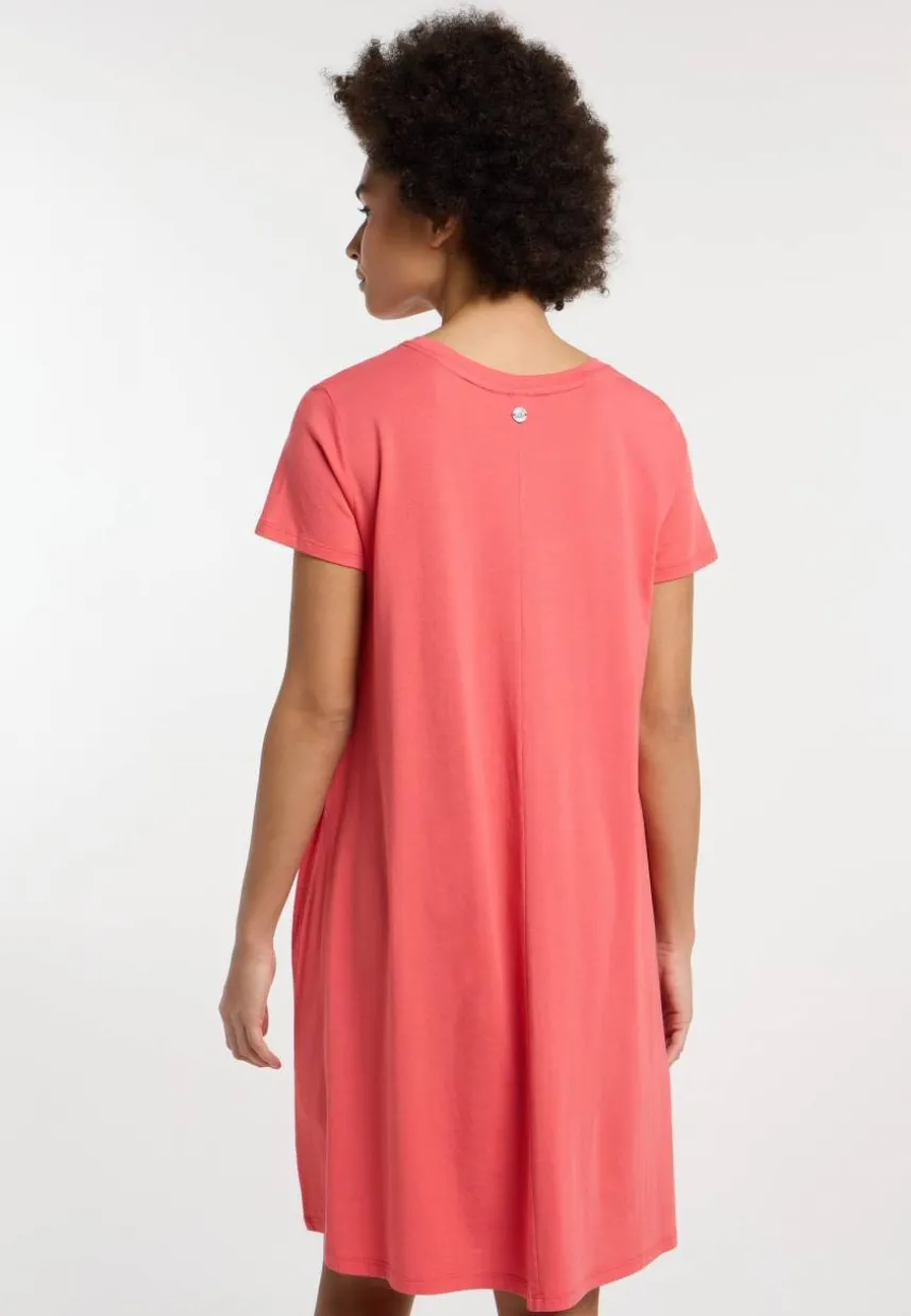 Suchst du nach einem Kleid, auf das du immer wieder zurückgreifen kannst? Dann hol dir das vegane T-Shirt-Kleid CHICKIE von ragwear. Dieses vielseitige Teil trifft genau die richtige Balance zwischen Komfort und Streetwear-Eleganz und ist eine essentielle Ergänzung für deine Sommergarderobe. Aus weichem Jersey-Stoff gefertigt, sorgt es dafür, dass du dich wohlfühlst und dabei großartig aussiehst. Mit einem klassischen Rundhalsausschnitt und praktischen Seitentaschen bietet es funktionalen Charme und einen lockeren, entspannten Schnitt, der dir jede Bewegung ermöglicht.