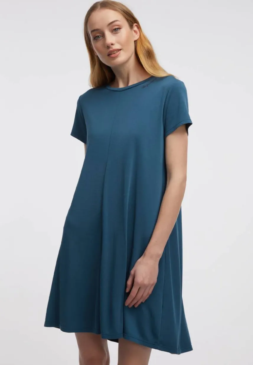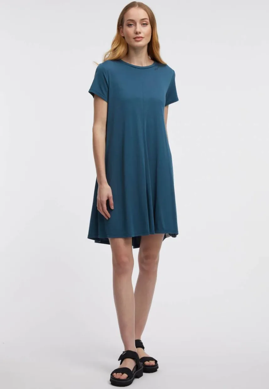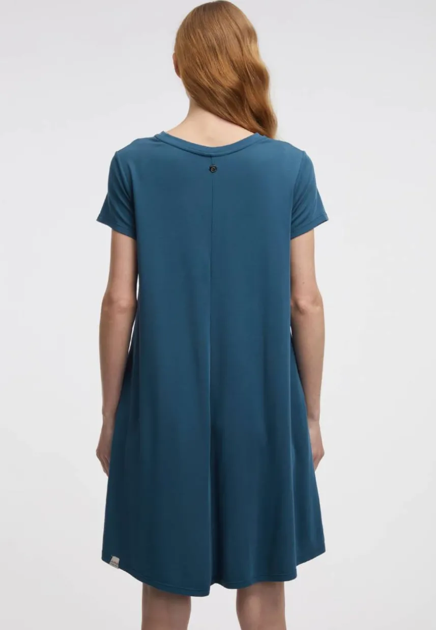Das vegane Kleid ‚CHICKIE‘ ist ein vielseitiges T-Shirt-Kleid im A-Linien-Schnitt. Es ist aus weichem Jersey-Stoff aus Modal und Polyester, der sich angenehm trägt. Es hat einen Rundhalsausschnitt und seitliche Eingriffstaschen für Hände und Kleinigkeiten. Es hat eine lockere, bequeme Passform, die dir Bewegungsfreiheit gibt. ‚CHICKIE‘ ist ein Kleid, das du zu jeder Gelegenheit tragen kannst.