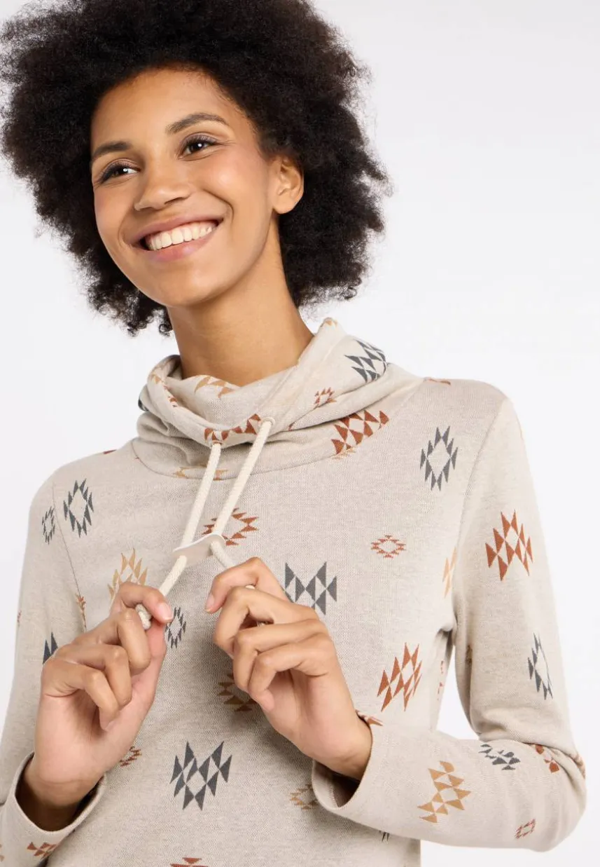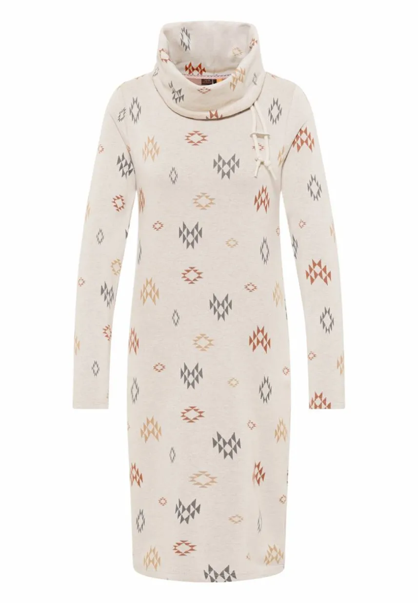 Trend meets Bequemlichkeit – unser veganes Kleid ‚CHLOENETTE‘ ist die perfekte Kombination aus beidem! Dank des schmalen Schnittes wirkt das Kleid sehr elegant, während es dank des weichen Jacquards super bequem ist. Das eingewebte Aztekenmuster gibt ihm eine besondere Note und der hohe Kragen mit Tunnelzug verleiht ihm einen frechen Touch. Kombiniert mit coolen Stiefeln entsteht ein kuscheliger Freizeitlook, mit Pumps ist das Kleid perfekt zum Ausgehen.