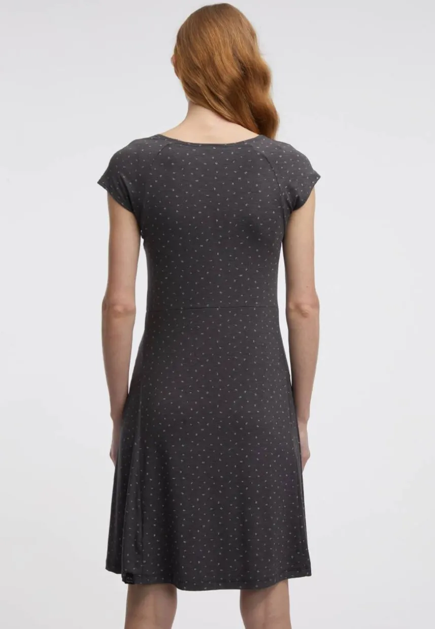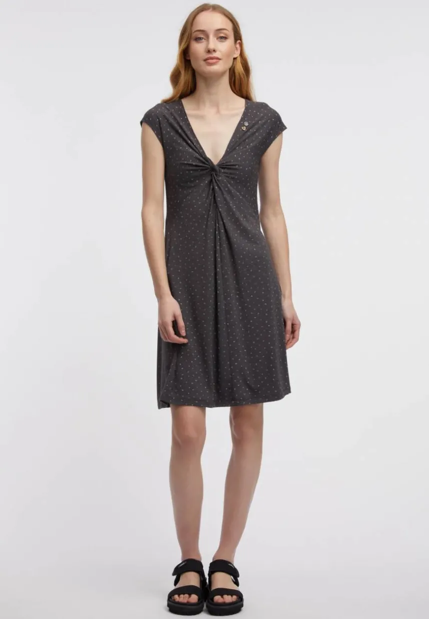 Das vegane Sommerkleid ‚COMFREY‘ von ragwear ist ein Teil, auf das dich alle ansprechen werden. Mit dem dezenten Allover-Muster sowie dem verspielten Schnitt mit eingedrehtem Ausschnitt entsteht ein süßer, femininer Look. Das kurze, ärmellose Kleid ist im Saum ausgestellt und schwingt locker mit. Den tiefen V-Ausschnitt zieren zwei dekorative Knöpfe für den unverkennbaren ragwear-Look. Egal womit du dieses Kleid kombinierst, du wirst sicher alle Blicke auf dich ziehen.