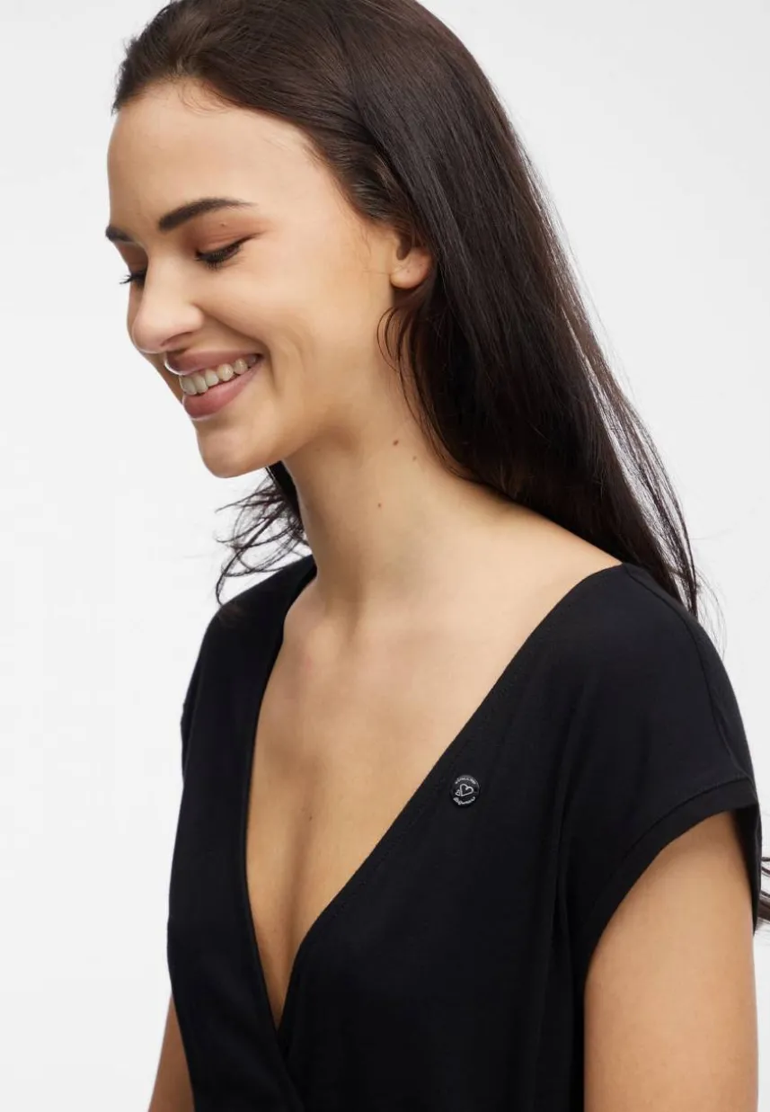 • Veganes Sommerkleid mit tiefem V-Ausschnitt vorne für einen frischen und lässigen Look