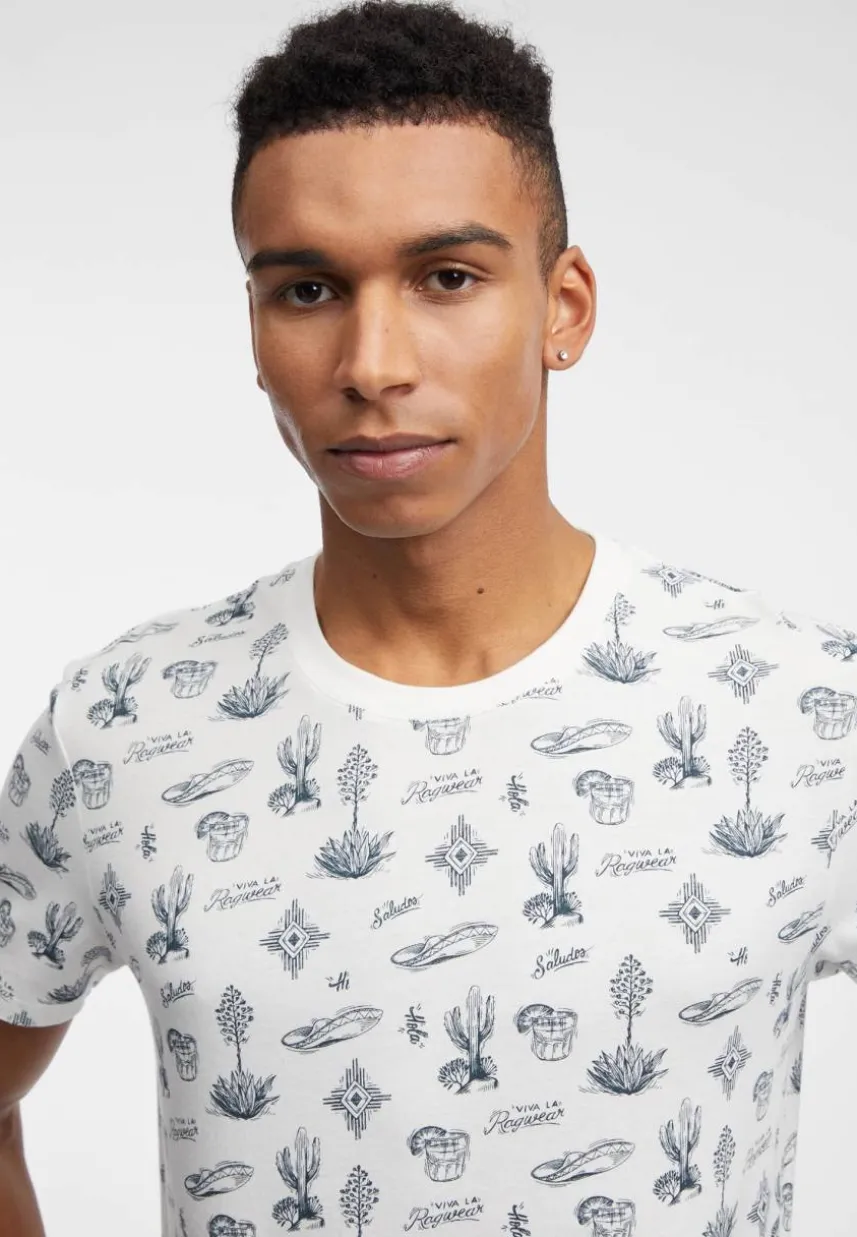 Das leichte, vegane T-Shirt ‚DAMI‘ von ragwear ist ein tolles Teil für jede Männergarderobe. Der Allover-Print lässt mexikanische Stimmung aufkommen. Der zeitgemäß bequeme Schnitt mit Rundhalsausschnitt trägt sich sehr angenehm. Das leichte Material aus 100% Baumwolle eignet sich hervorragend für den Sommer.
