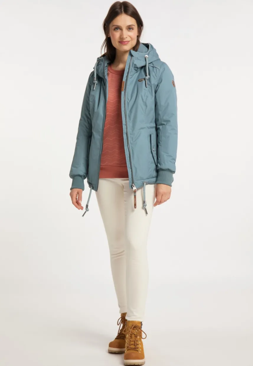 Die vegane Jacke ´DANKA` von ragwear ist nicht nur wegen ihres wasserdichten Materials der ideale Begleiter für die kältere Jahreszeit. Sie hat auch in Sachen Styling einiges drauf! Mit dem innenliegenden Tunnelzug auf Taillenhöhe, der Kapuze und dem Saum mit Kordel und elastischen Rippstrickbündchen an den Ärmelabschlüssen ist für Deinen Style und Komfort gesorgt. Klappentaschen mit Druckknöpfen und Kunstleder-Applikationen ergänzen das alltagstaugliche Design.