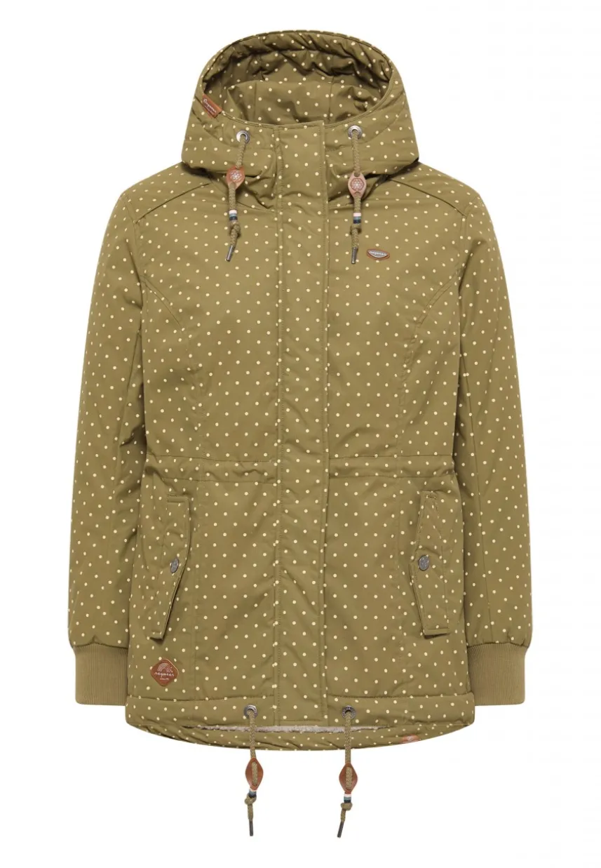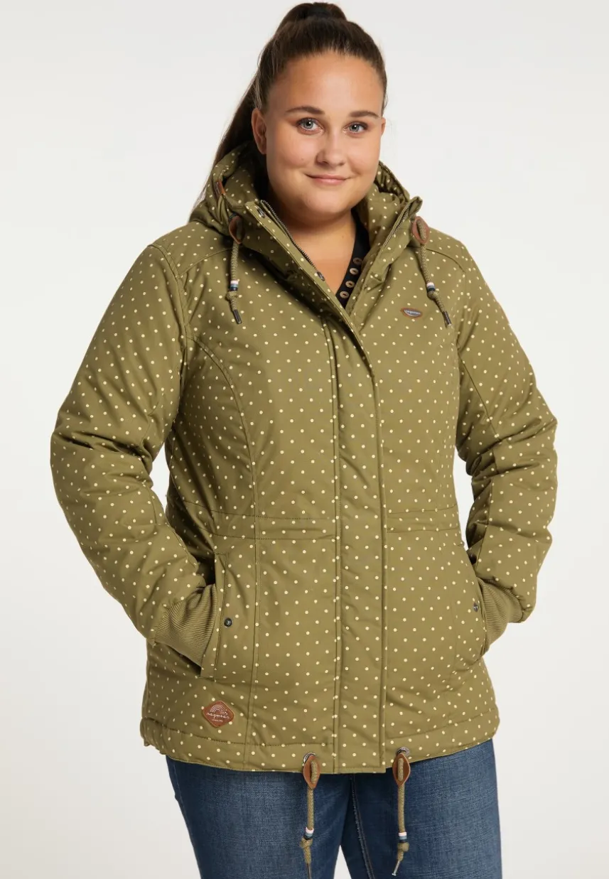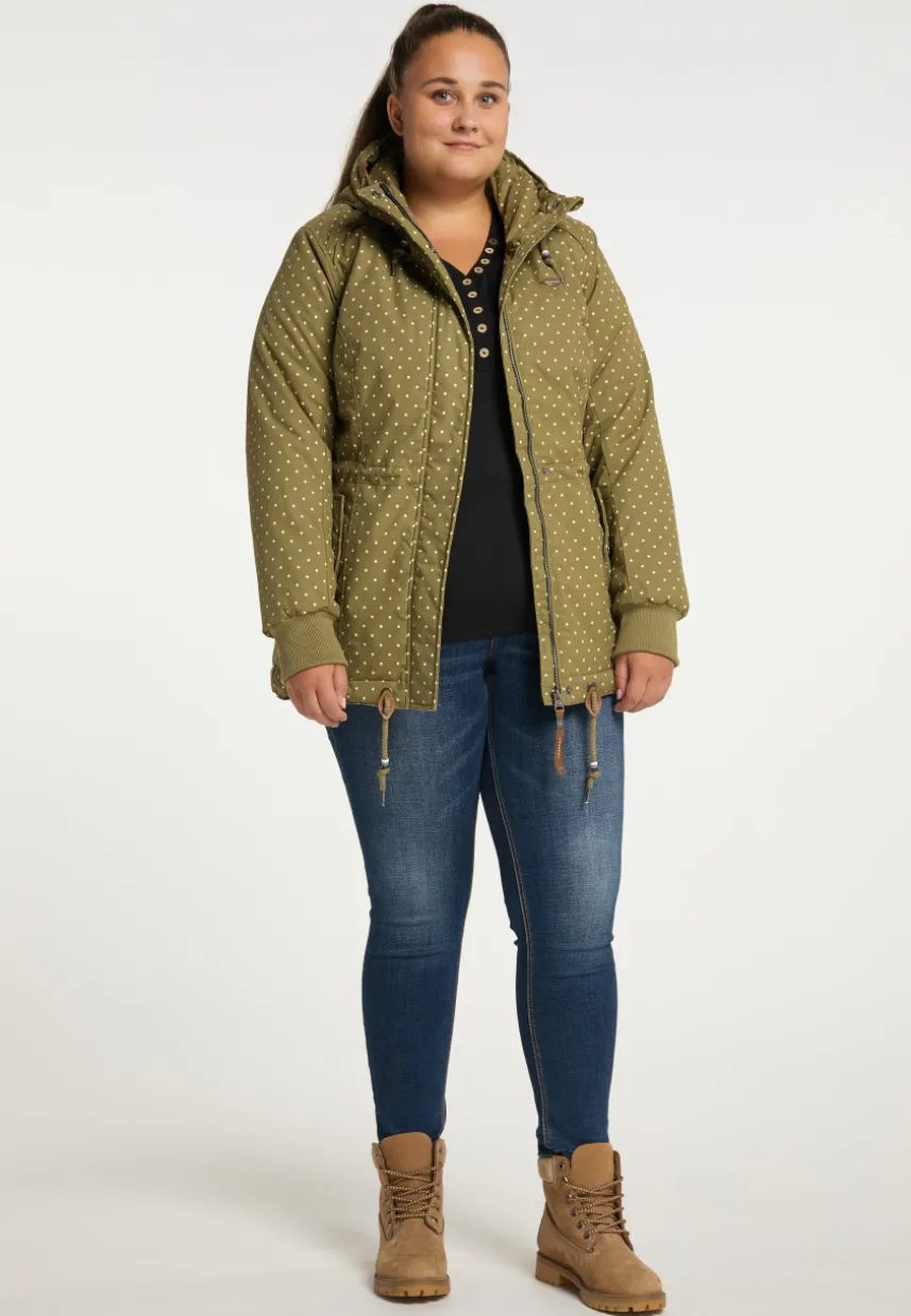 Mit ihrem femininen Schnitt und dem süßen Pünktchen-Muster kleidet Dich die vegane Jacke ´DANKA DOTS PLUS` von ragwear in Streetwear-Flair. Sowohl die hochgeschnittene Kapuze mit ihrer Kordel, als auch der leicht ausgestellte, hinten etwas verlängerte Saum, sind mit Tunnelzug und dicker Kordel versehen. Auch in der Taille kannst du die Weite bequem über den innenliegenden Kordelzug regulieren. Schräge Klappentaschen mit Druckknopf und elastische Rippstrickbündchen an den Ärmelabschlüssen sind weitere Details, die die Jacke zu einem Lieblingsstück machen.