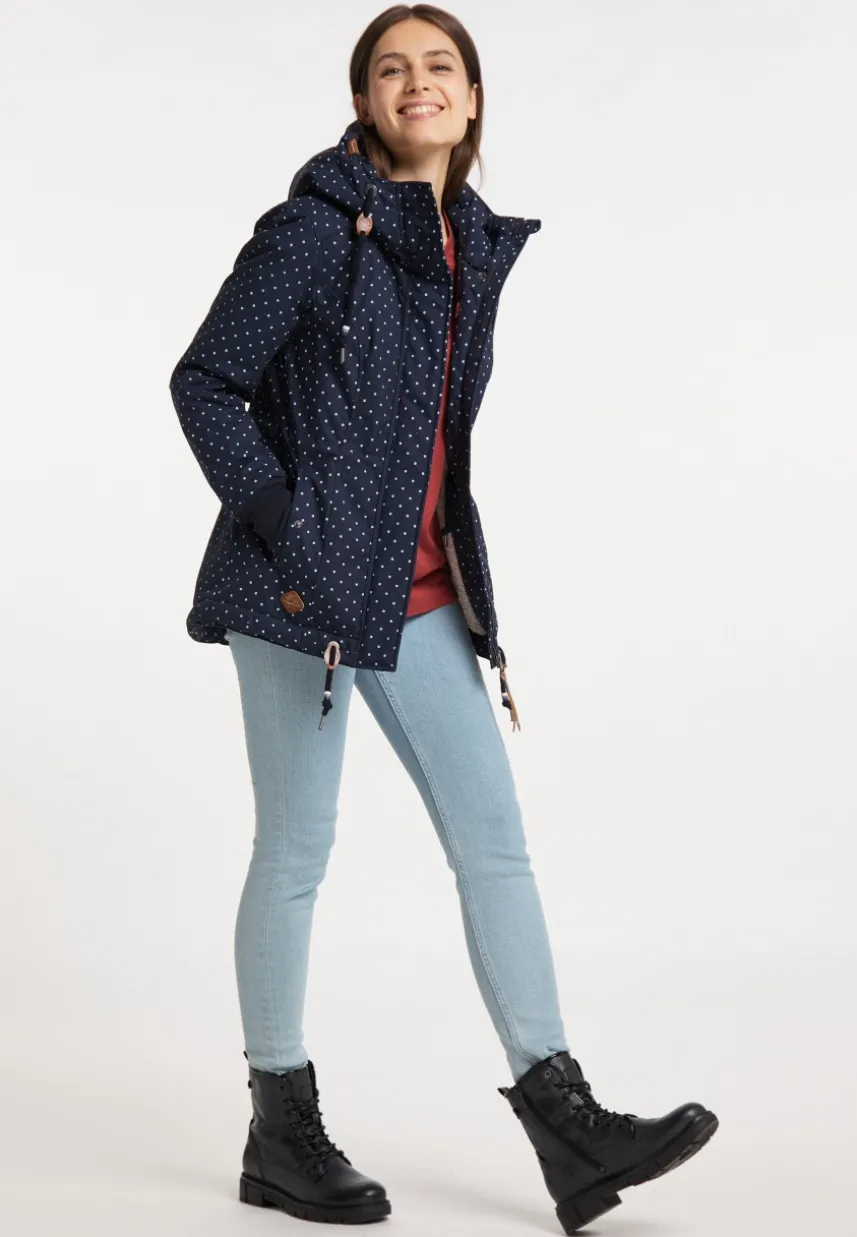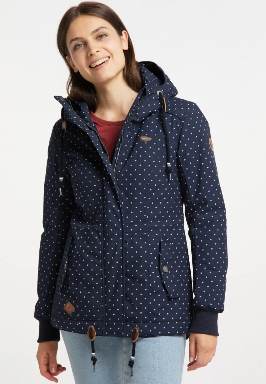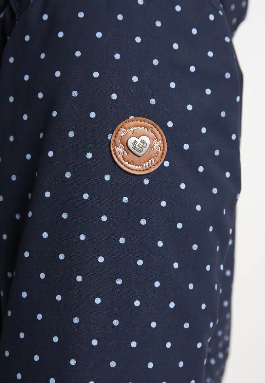 Vegan, sportlich und süß: Die Jacke ´DANKA DOTS` von ragwear verbindet Streetwear-Elemente mit unserem beliebten Pünktchenmuster. Eine hochgeschnittene Kapuze mit Kordel, das wasserdichte Material, schräge Klappentaschen mit Druckknopf, sowie Rippstrickbündchen an den Ärmeln machen aus der Jacke ein Lieblingskleidungsstück. Die Taillenweite kannst du selbst über eine versteckte Kordel im Inneren regulieren. Stilsicher abgerundet wird der Look mit einer Kordel im Saum und Kunstleder-Applikationen.