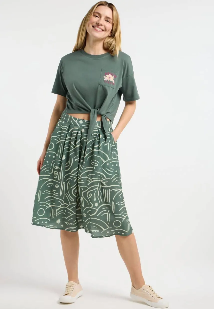 Der DELISE Rock vereint lässigen Komfort mit stylischen Details. Das luftige Webmaterial mit leichter Knitteroptik und das einzigartige Muster machen ihn zu einem echten Hingucker. In der schmeichelnden A-Linien-Form sorgt der breite, hinten elastische Bund für eine perfekte Passform und maximalen Tragekomfort. Praktische Eingriffstaschen runden das Design ab und machen den veganen Faltenrock zu deinem idealen Begleiter für den Sommer – egal, ob casual mit Sneakers oder schick mit Pumps kombiniert.