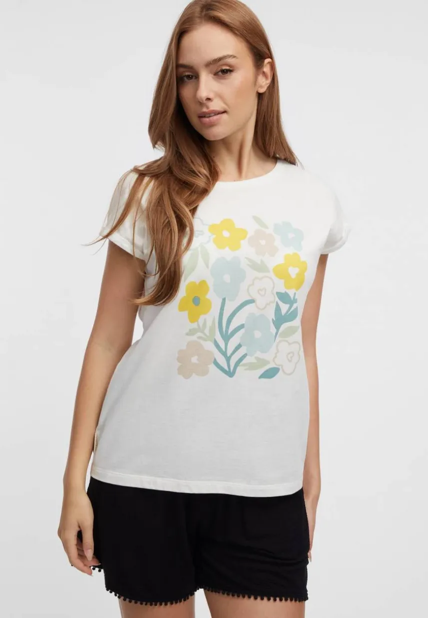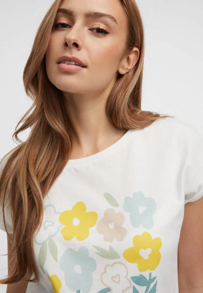 • Veganes Sommer-T-Shirt mit buntem Blumendruck