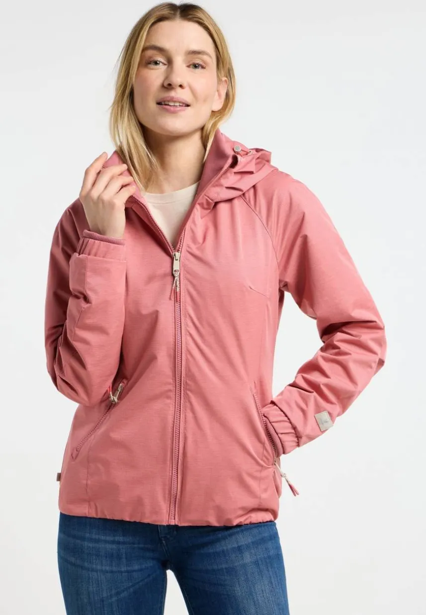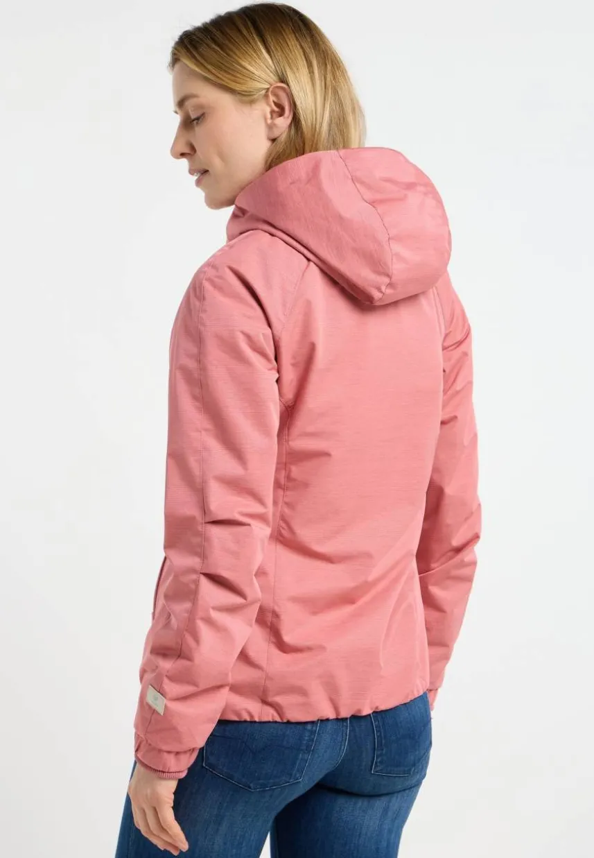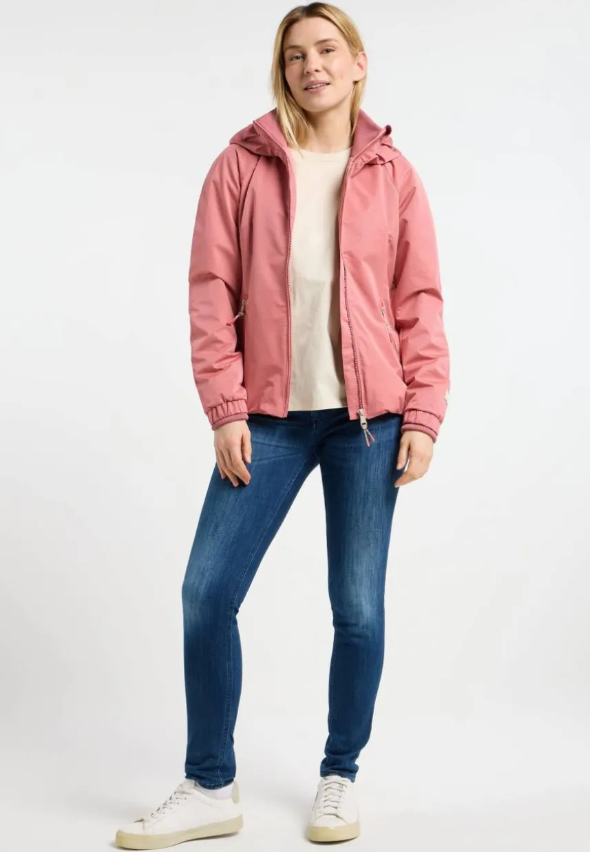 Die vegane Jacke DIZZIE von ragwear ist dein perfekter Begleiter für Frühling und Sommer. Das leichte, wasserabweisende und winddichte Material und der leicht taillierte, aber bequeme Schnitt machen sie vielseitig einsetzbar. Die hochgeschlossene Kapuze punktet mit einer dekorativen Raffung, während die Raglanärmel im modernen Zwei-Lagen-Look mit Rippstrick- und Gummibündchen enden. Auch im Saum sorgt ein Gummi für einen guten Sitz. Seitliche Eingrifftaschen mit Reißverschluss und kleine Applikationen runden das Design der sportlichen Freizeit-Jacke ab.