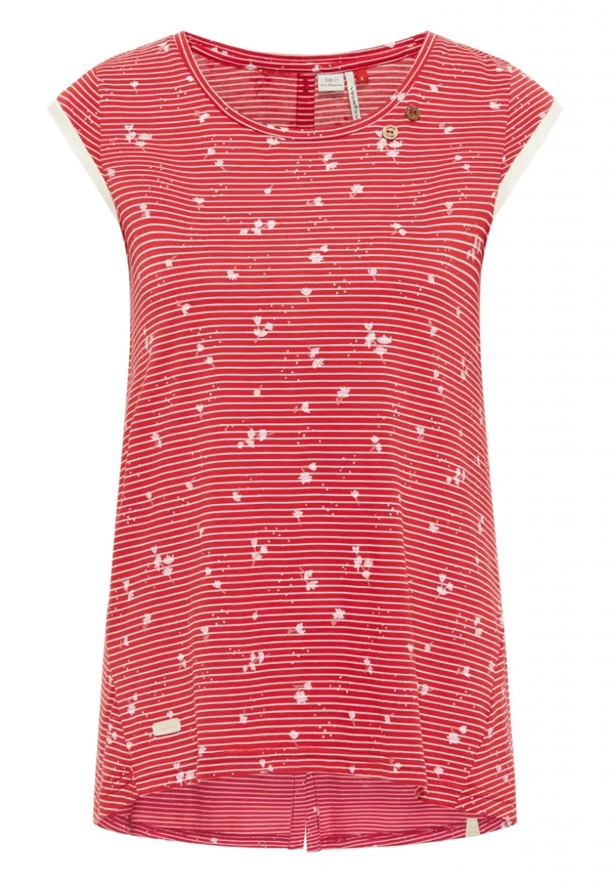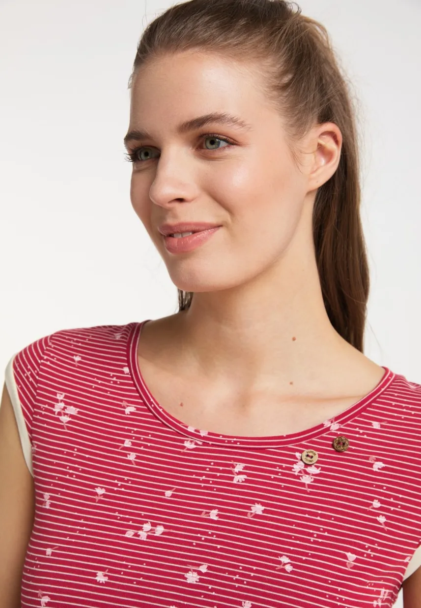 Mit dem T-Shirt ´DOMINICA‘ von ragwear stellst Du Deinen Geschmack in modischer Hinsicht unter Beweis. Das wunderschöne T-Shirt begeistert durch einen weichen Griff und eine luftige Passform. Im Saum ist das Top ausgestellt und deshalb ideal für wärmere Temperaturen geeignet. Optisch punktet es mit schmalen Streifen und aufgedruckten Blumen sowie einer durchgehenden Knopfleiste auf der Rückseite.