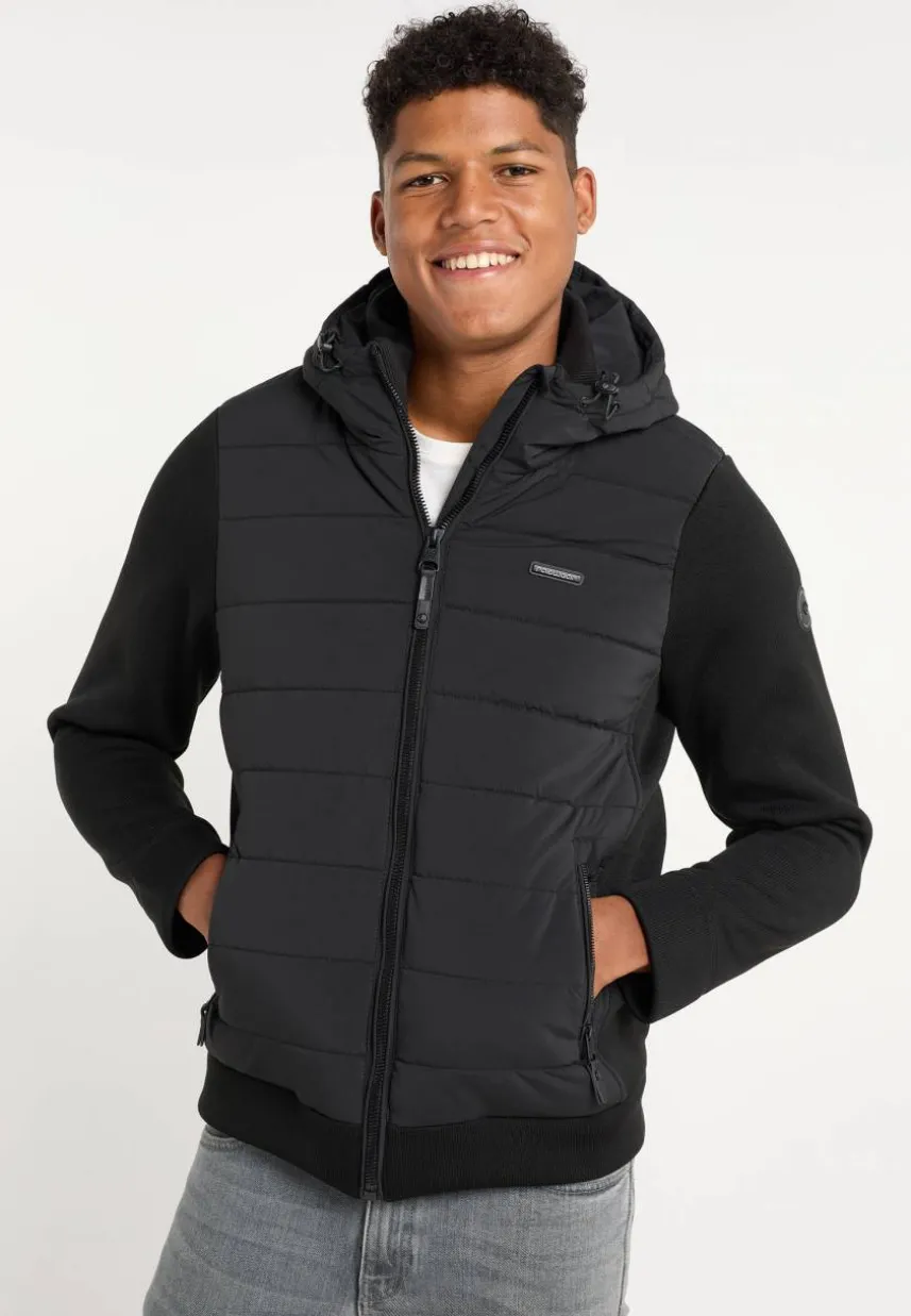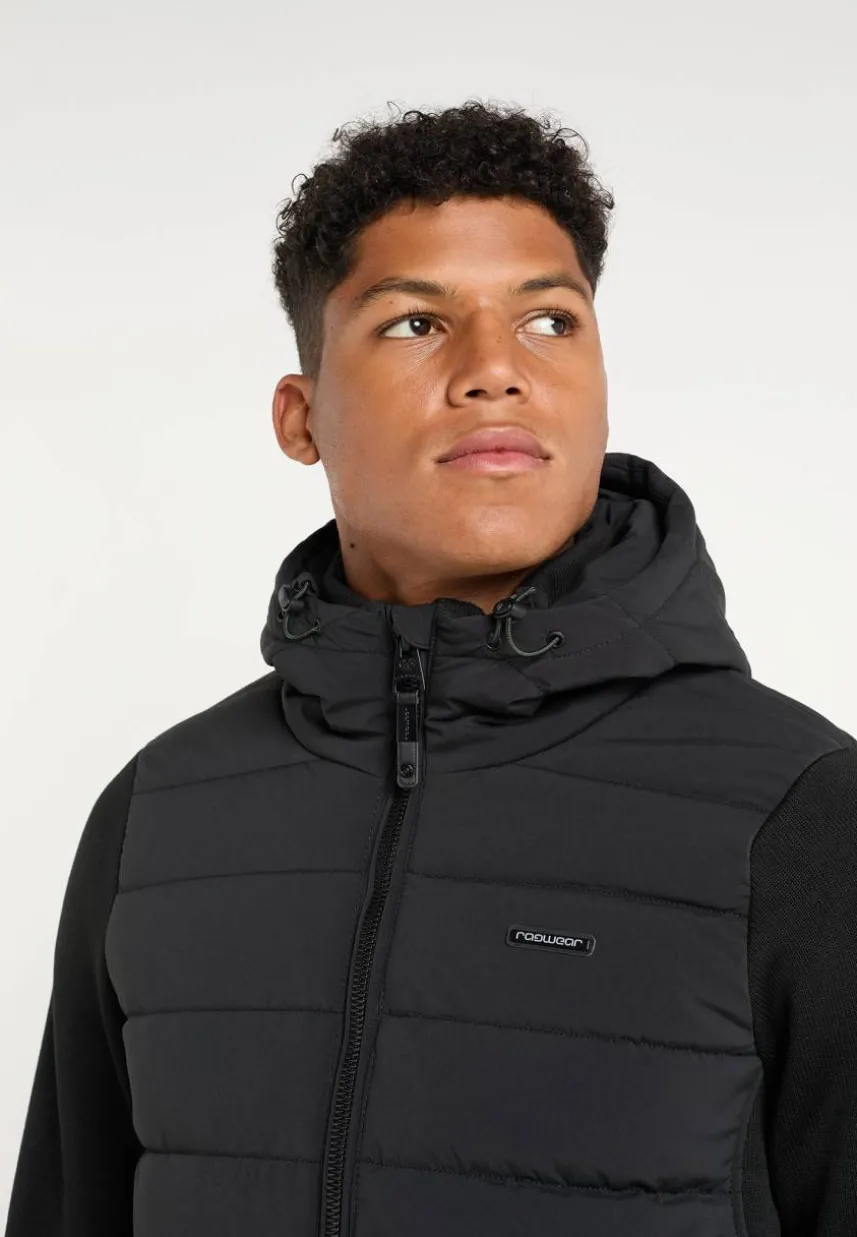 Die vegane Jacke ‚DORYAN‘ von ragwear überzeugt mit einem coolen Material-Mix. Die Ärmel heben sich von dem Rest der gesteppten Jacke ab. Ein Stehkragen, eine Kapuze mit Tunnelzug und Reißverschlusstaschen ergänzen das sportliche Design. Als Allrounder lässt sich die warme Jacke vielseitig stylen und sollte im Kleiderschrank von modebewussten Männern nicht fehlen. Das Material ist wasserabweisend und hält kurze Nieselregen aus.