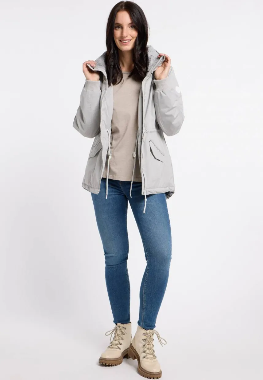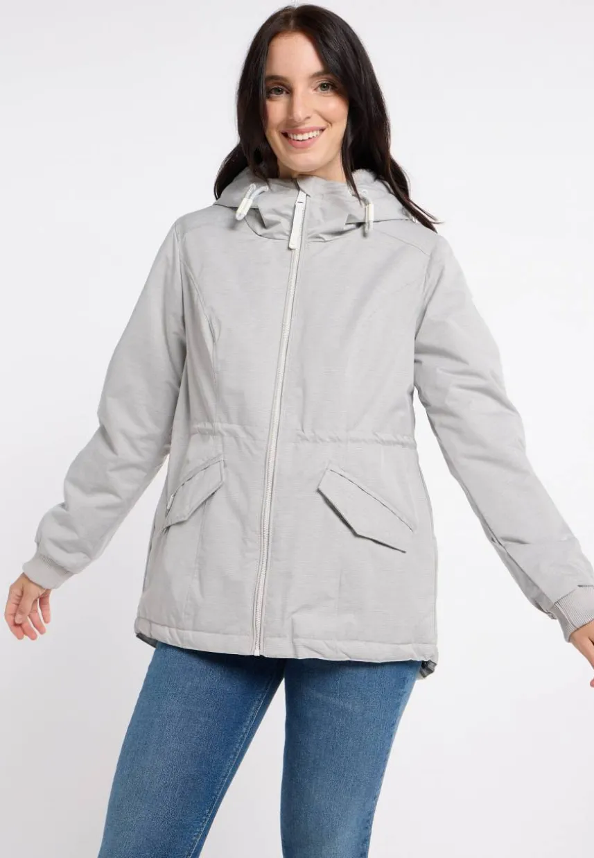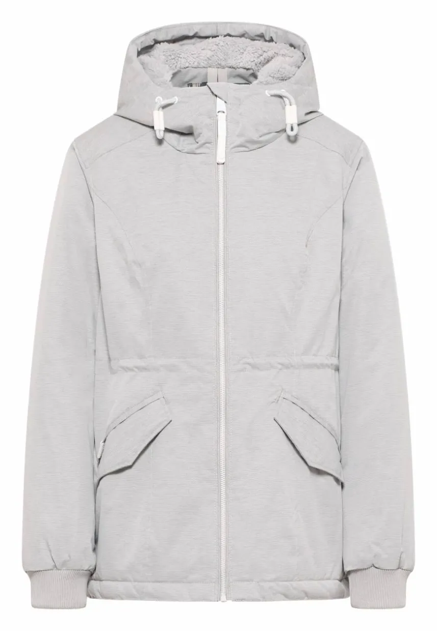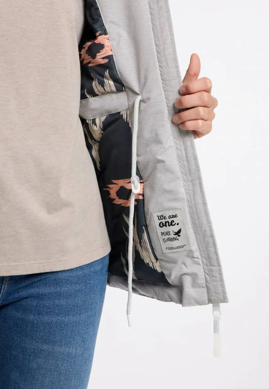 • Vegane Übergangsjacke mit hochgeschnittener Kapuze und Kordelzug