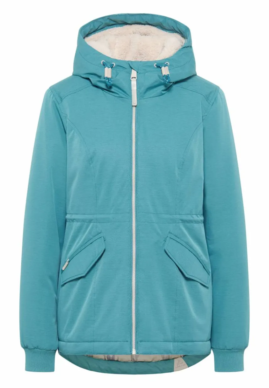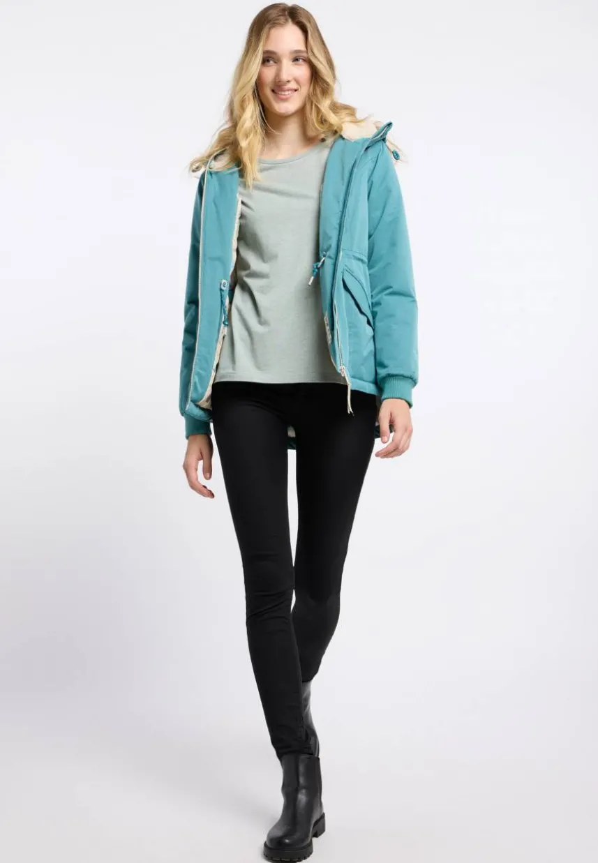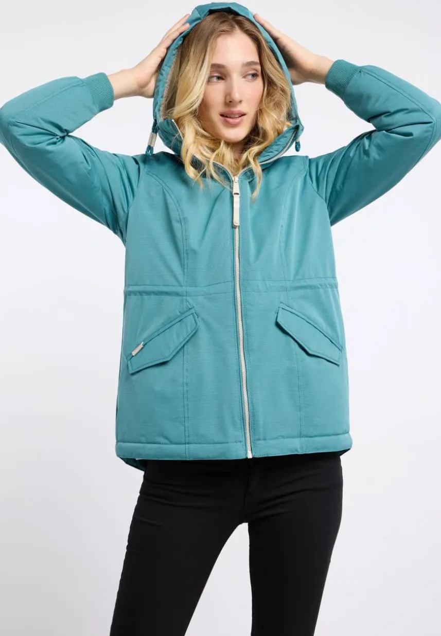 • Vegane Übergangsjacke mit hochgeschnittener Kapuze und Kordelzug