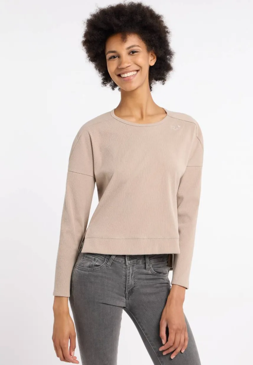 Mach es dir bequem mit Stil im Longsleeve ‚FRANKLIA‘! Aus kuscheligem Samtstrick gefertigt, bietet dieses Oberteil nicht nur ein angenehmes Tragegefühl, sondern auch einen echten Blickfang. Der kurze und weite Schnitt sorgt für eine moderne Silhouette. Die längere, abgerundete Rückenpartie verleiht dem Ganzen Dynamik, während die seitlichen Schlitze einen Hauch von Raffinesse hinzufügen. Die überschnittenen Ärmel betonen den entspannten Charakter des Longsleeves. Eine dezente Logostickerei am Ausschnitt rundet das Design ab. Egal, ob für einen gemütlichen Tag zu Hause oder als schickes Basic für deine Ausgehgarderobe, ‚FRANKLIA‘ ist ein vielseitiges Must-have!