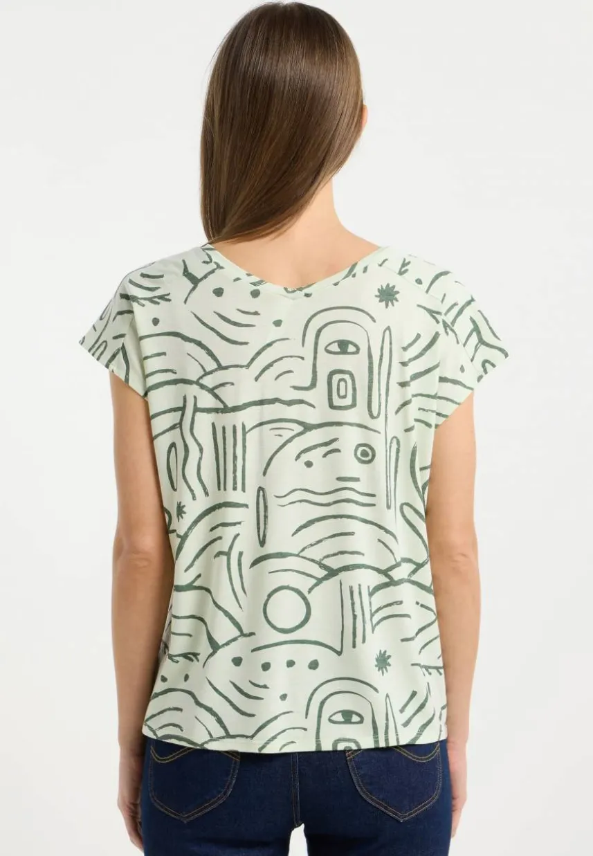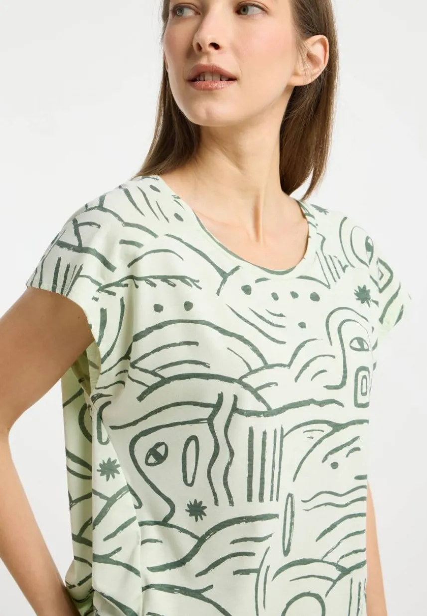 Sag ‚Bye‘ zu normalen T-Shirts und ‚Hi‘ zum coolen Style des GRATEEN PRINT Oberteils von ragwear. Mit seinem auffälligen Print zieht dieses Shirt definitiv alle Blicke auf sich. Der asymmetrische Saum, die lockere Passform und die überschnittenen Ärmel machen es zum ultimativen Statement für den Sommer. Aus ultraweichem Jersey gefertigt, ist es nicht nur ein Blickfang, sondern auch super bequem – ideal für warme Tage. Hol dir dieses Must-have für alle Sommermomente – schnapp dir den Picknickkorb und starte stylisch in die Saison!