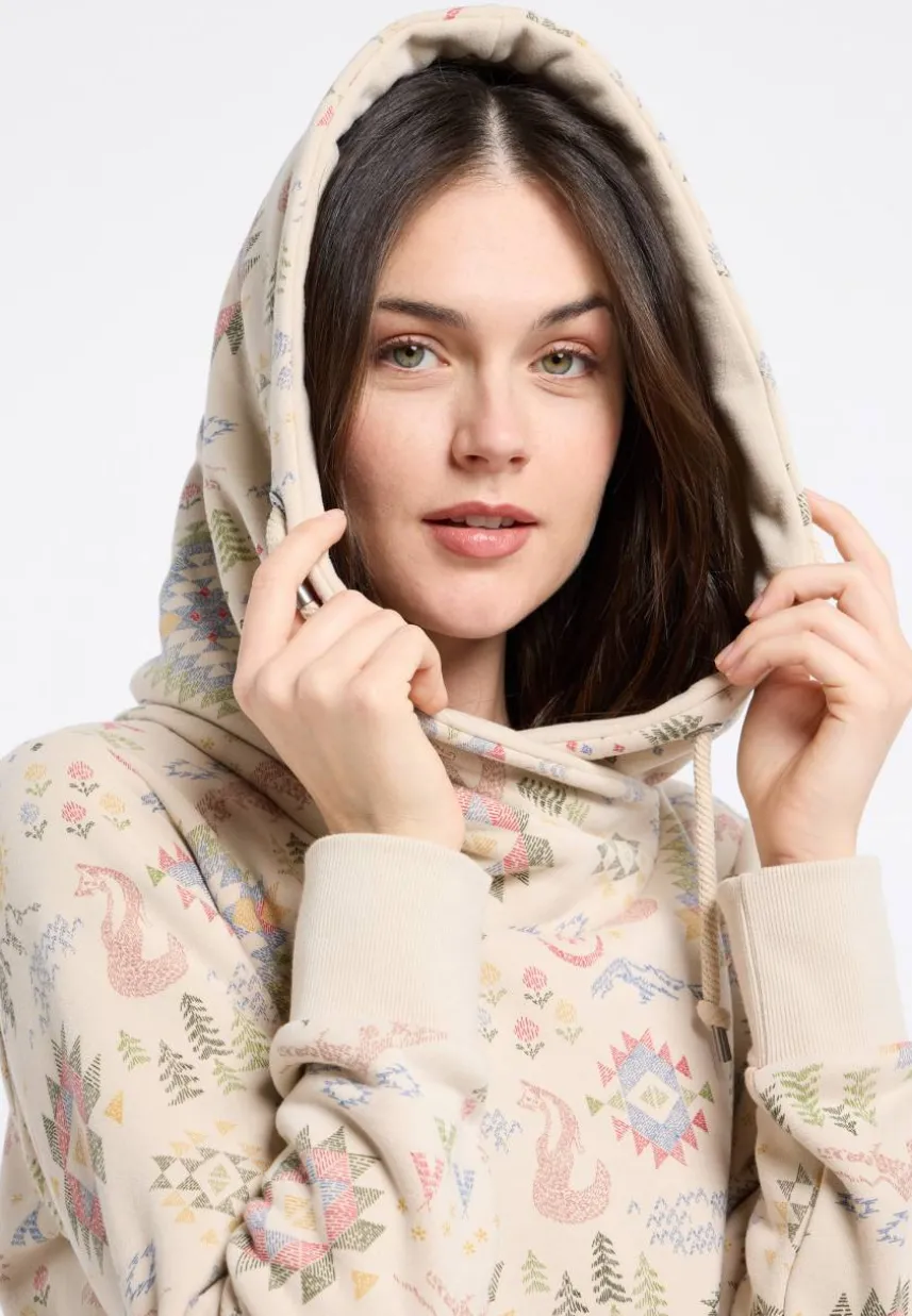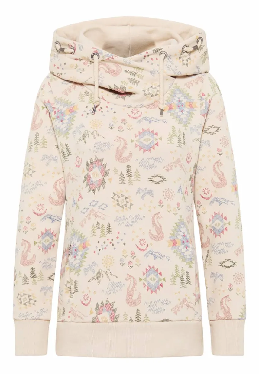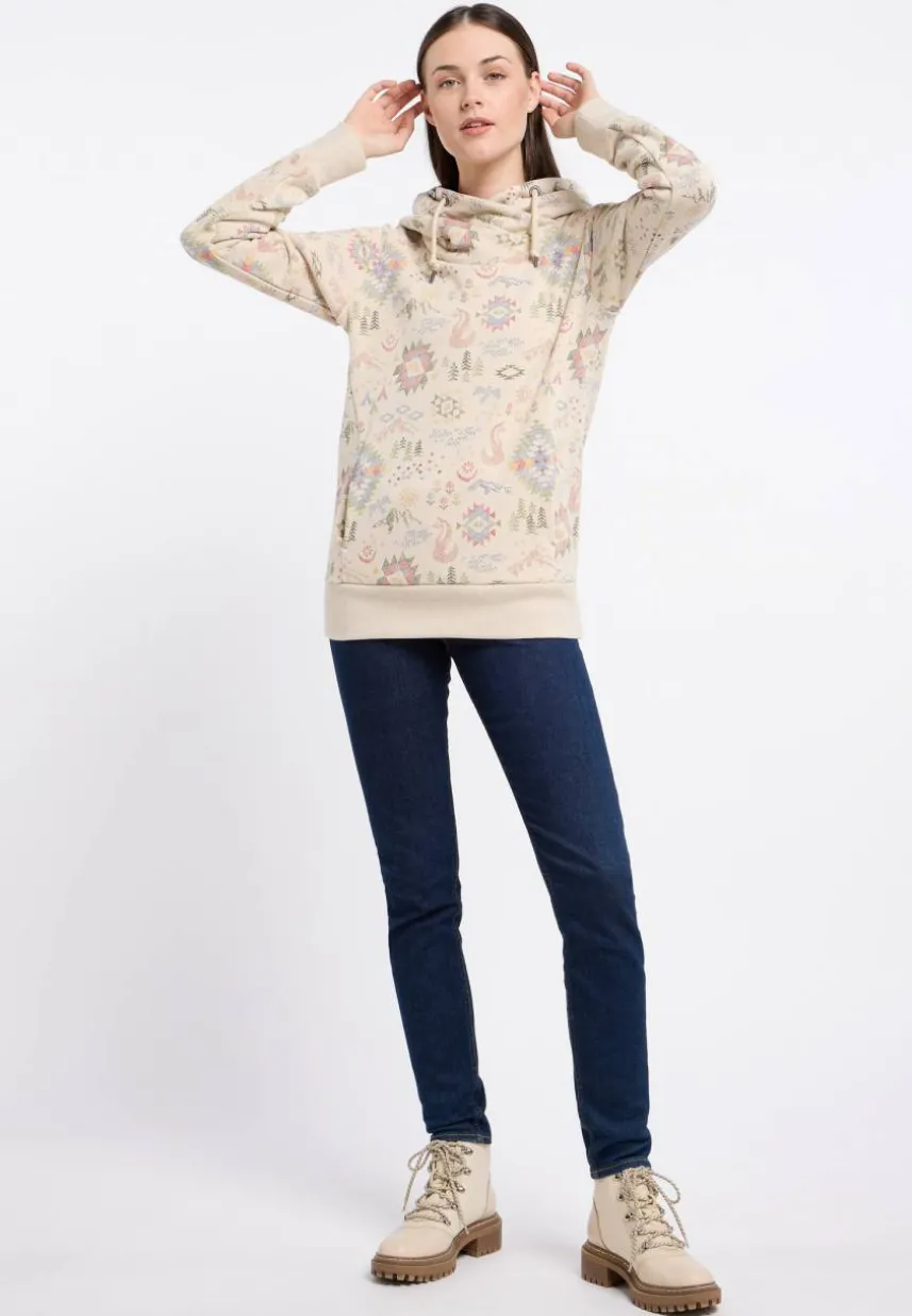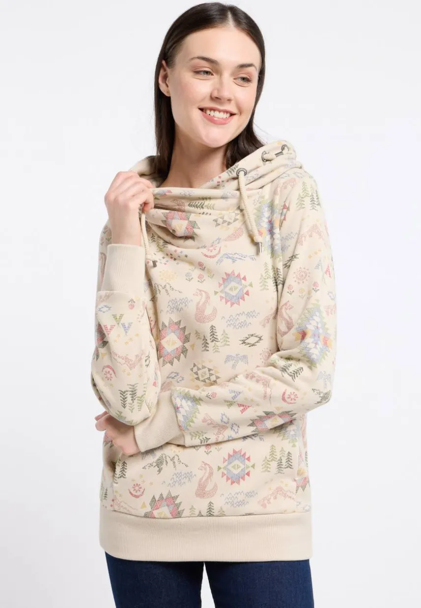 Der Hoodie ‚GRISELL PRINT‘ ist super bequem und sieht klasse aus. Er ist aus weichem, warmem Sweat und hat elastische Rippstrickbündchen für einen perfekten Sitz. Dazu kommen noch die praktischen Eingriffstaschen. Das coole Azteken-Muster fällt sofort auf, genauso wie die große Kapuze in Wickeloptik mit Kordel.