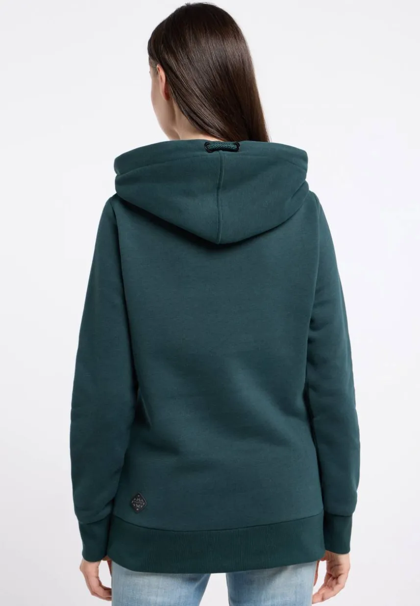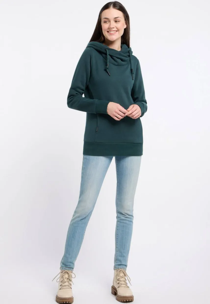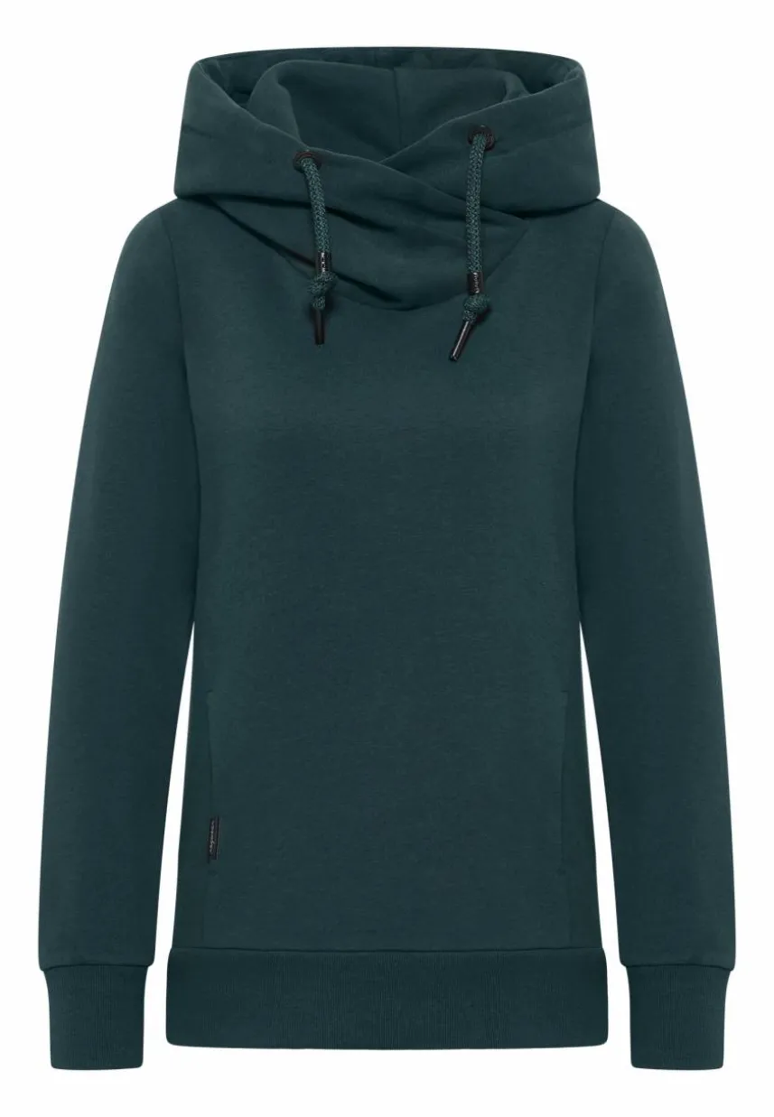 Der Hoodie ‚GRISELL‘ von ragwear vereint Gemütlichkeit und Stil auf perfekte Weise. Elastische Rippstrickbündchen und das weiche, warme Material sorgen für Komfort und eine gute Passform. Die seitlichen Eingrifftaschen bieten Platz zum Vergraben deiner Hände. Die große Kapuze in Wickeloptik und mit Kordel und die Label-Applikationen verleihen dem Design den letzten Schliff. Mit diesem veganen Sweater kannst du dich einfach wohlfühlen und gut aussehen.