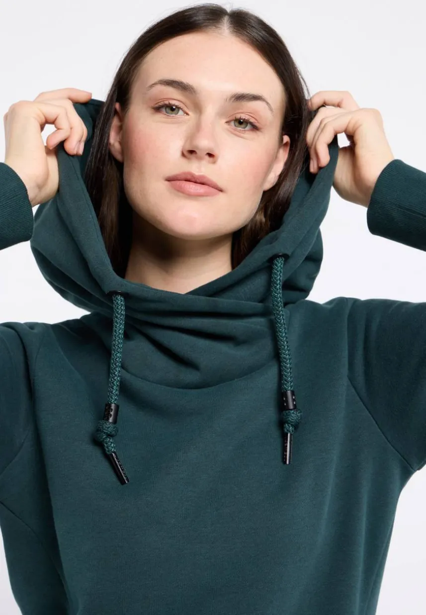 • Veganer Hoodie mit großer Kapuze mit Kordel in Wickeloptik