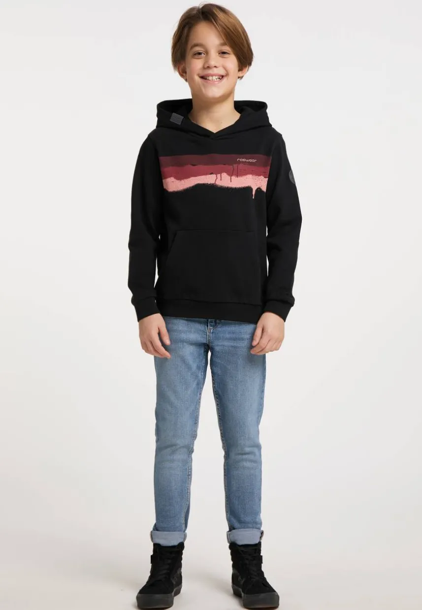 Der vegane Hoodie ´HAKY SWEAT ORGANIC` ist ein angesagter Streetwear-Pulli. Coole Jungs lieben den Streifen-Druck im Graffiti-Style. Das nachhaltige Sweat-Material aus Bio-Baumwolle und recyceltem Polyester, die große Kapuze, sowie Rippstrickbündchen an Ärmeln und Saum bringen besten Tragekomfort. Den Streetwear-Style ergänzt eine Kängurutasche vorn.