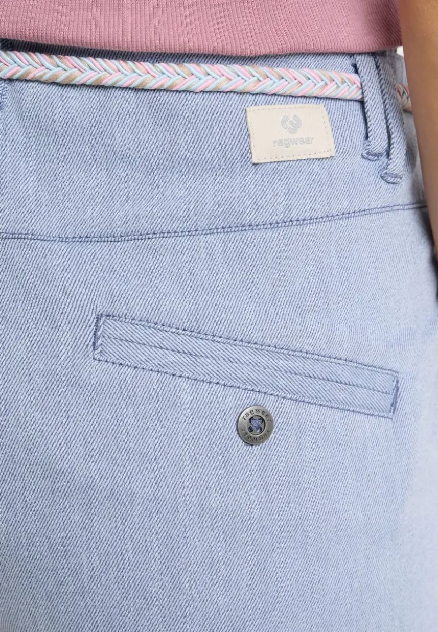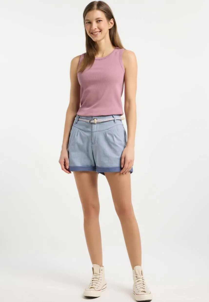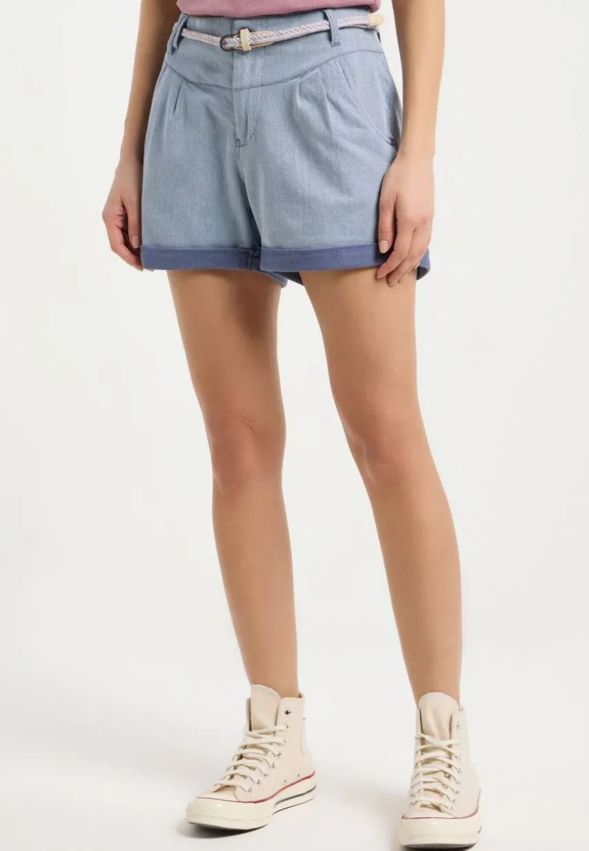 Die vegane Sommershorts HEEVEN von ragwear ist ein bequemer Allrounder im 5-Pocket-Stil. Ein hübscher Flechtgürtel, Bundfalten und umgekrempelte Hosenbeine verleihen ihr einen lässig-modischen Touch, der jeden sommerlichen Look abrundet. Besonderer Eyecatcher sind die schrägen Leistentaschen, die für das gewisse Etwas sorgen. Das weiche Material im Two-Tone-Denim-Look sieht nicht nur stylisch aus, sondern bietet auch maximalen Tragekomfort – perfekt für alle Sommerabenteuer!