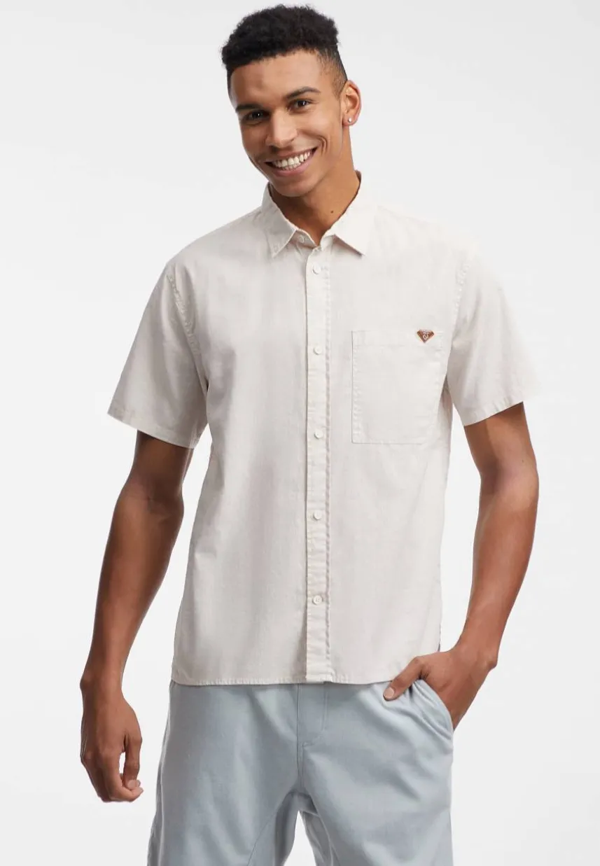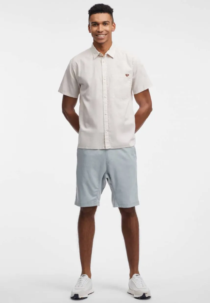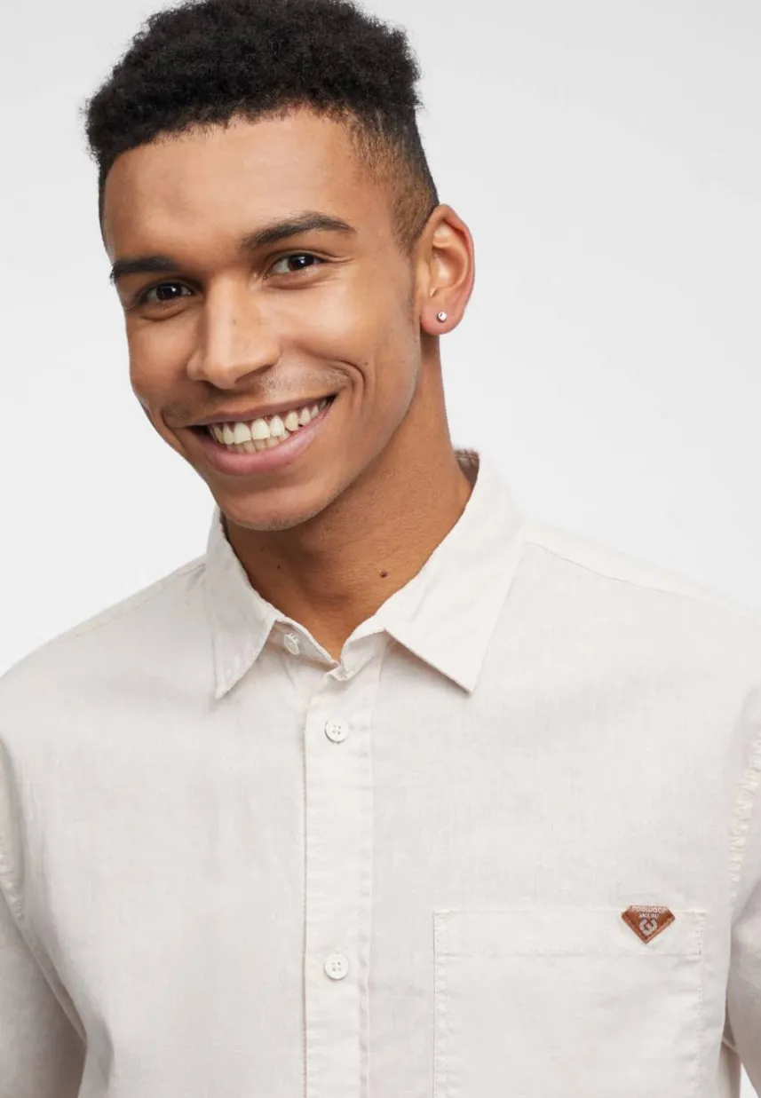 Das vegane Kurzarmhemd ‚HERLIE‘ ist dein luftiger Begleiter in der warmen Jahreszeit. Das Material aus einer Mischung aus Leinen und Baumwolle ist besonders atmungsaktiv und hilft dir dabei cool zu bleiben. Die entspannte Passform hilft noch zusätzlich dabei. Abgerundet wird das Design mit einem Kent-Kragen und einer Brusttasche mit kleinem Logo-Patch. Ob zu Jeans, Chino oder Bermuda-Shorts – das Hemd fügt sich in jeden deiner Looks perfekt ein.