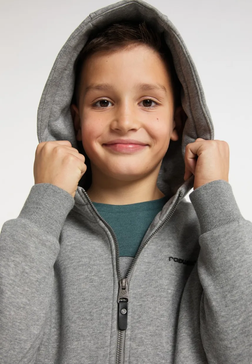 Die vegane Sweatjacke ´HONZA ZIP` von ragwear ist ein toller Allrounder, der mit Kapuze und elastischen Rippstrickbündchen an den Ärmeln und dem Saum in Sachen Komfort überzeugt. Die Kapuzenjacke hat seitliche Eingrifftaschen und lässt sich mit allem kombinieren. Das weiche Sweat-Material hält schön warm und bringt die Kids gemütlich durch die kalte Jahreszeit.