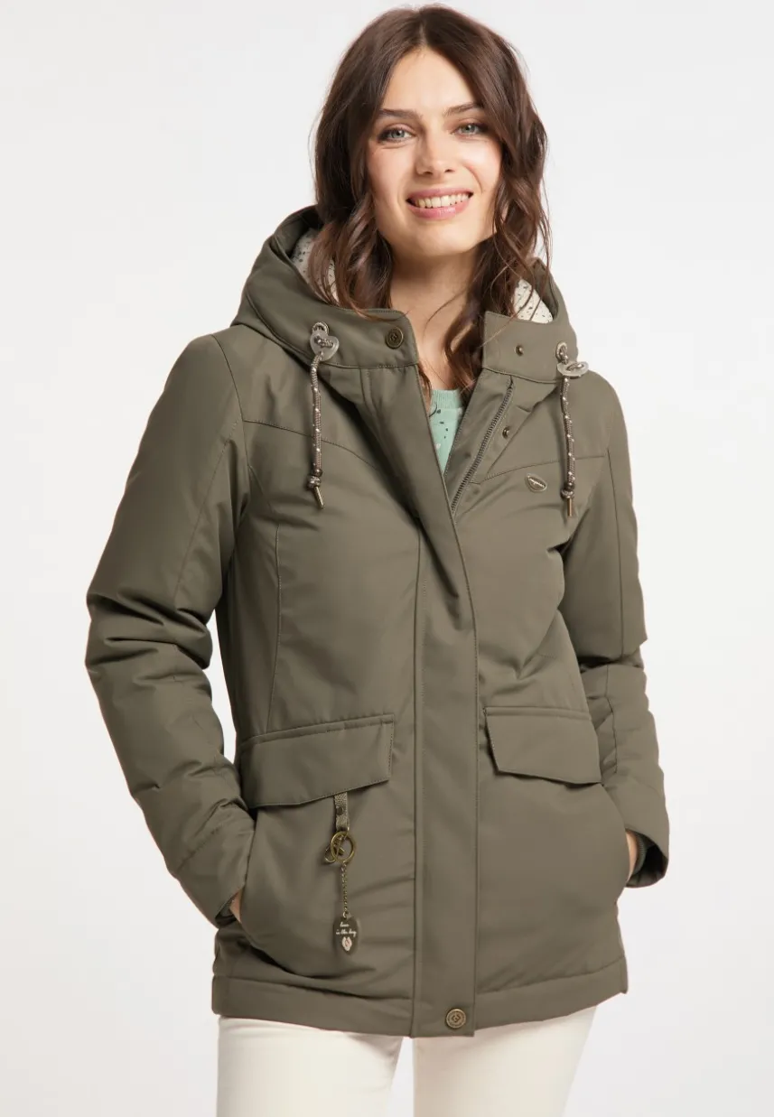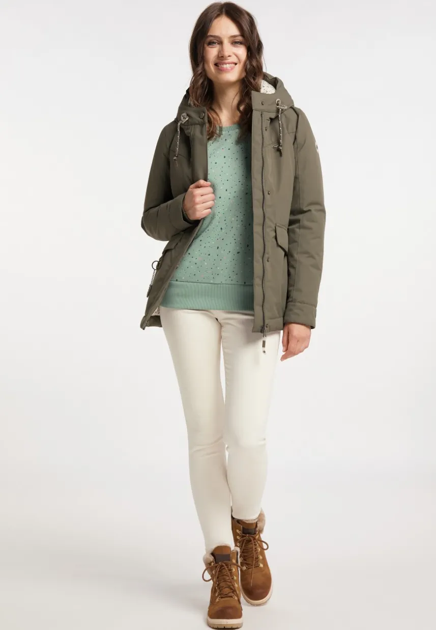 Die vegane Jacke ´JAZMIN REMAKE` von ragwear wird Dich stylisch und nachhaltig durch die kälteren Jahreszeiten begleiten. Das wasserdichte Material aus recyceltem Polyester spart Wasser und Energie bei der Herstellung. Und auch in Sachen Styling hat die Jacke einiges drauf! Der leicht taillierte Schnitt wirkt feminin und wird von praktischen Features, wie einer kuschelig gefütterten Kapuze mit Kordel und leicht schrägen Klappentaschen ergänzt. Elastische Rippstrickbündchen an den Ärmelabschlüssen sorgen außerdem für Komfort.