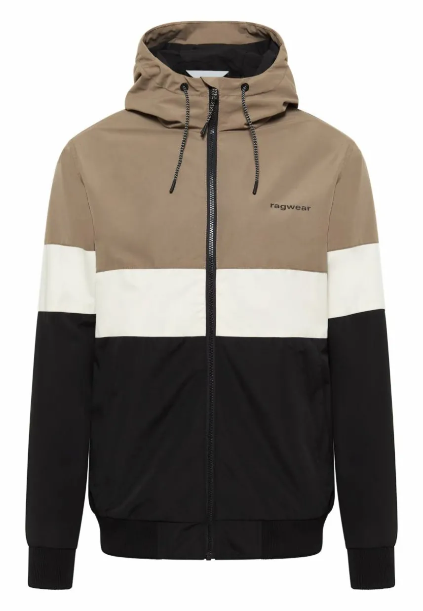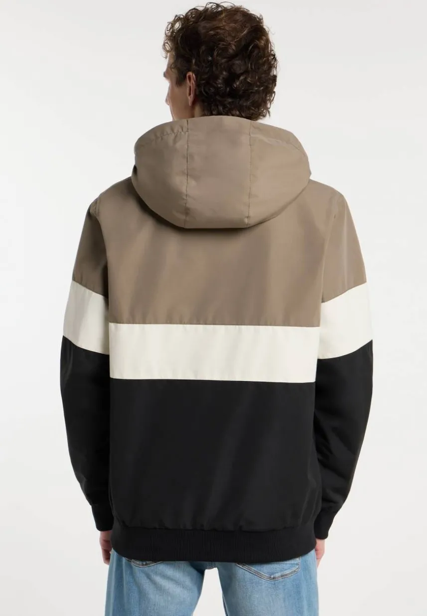 • Dreifarbige Übergangsjacke mit Kapuze und Kordel