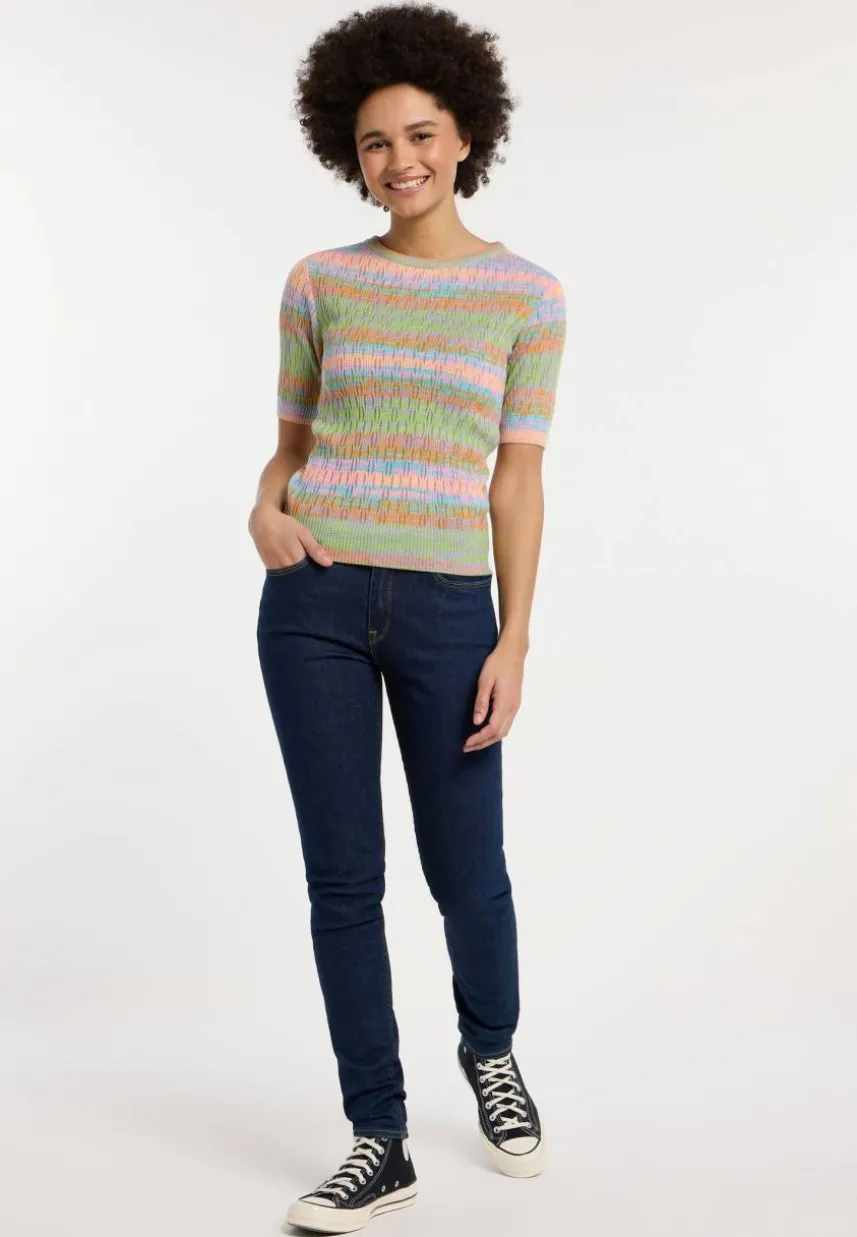 Wenn es ein Top gibt, das so strahlt wie deine Persönlichkeit, dann ist es das Top LAWIN von ragwear! Dieses süße und farbenfrohe Oberteil mit seiner Pastell-Streifenoptik versprüht pure Fröhlichkeit. Mit seinem weichen, veganen Strickstoff, sorgt es für den ganzen Tag für Komfort und sieht dabei fantastisch aus. Die gerippte Textur passt perfekt zu den eleganten ellbogenlangen Ärmeln und dem halsnahen Ausschnitt – ein stylischer, gepflegter Look für jede Gelegenheit.
