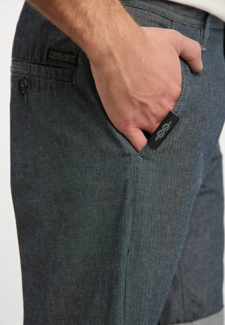 Total lässig: Bei der veganen Sommer Shorts ‚LINY‘ von ragwear passt einfach alles zusammen. Seitliche Eingrifftaschen vorn und Leistentaschen hinten sind praktisch und runden den lässigen Style klassisch ab. Für den Two-Tone-Look sorgt der umgeschlagene Beinabschluss. Kombiniere die bequeme, kurze Hose mit einem Poloshirt oder einem T-Shirt und modischen Sneakern.