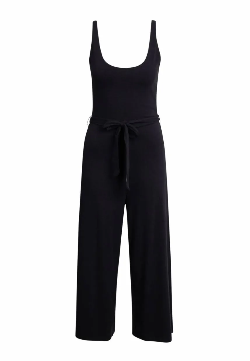 • Veganer ärmelloser Jumpsuit mit tiefem runden Rückenausschnitt