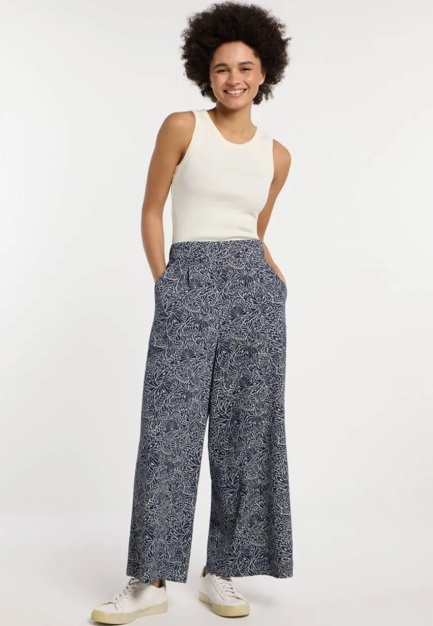 Wenn der Sommer eine Hose entwerfen würde, wäre es die LOGGAN PRINT von ragwear. Diese Marlene-inspirierte Hose versprüht mediterranen Charme mit ihrem verspielten Muster und der luftigen Silhouette. Ideal für sonnendurchflutete Tage kombiniert sie Stil und Komfort auf elegante Weise und ist ein absolutes Must-have für deine Sommergarderobe. Ob bei einem Strandspaziergang oder einer Party – mit dieser veganen Hose strahlst du einen entspannten, sommerlichen Look aus.