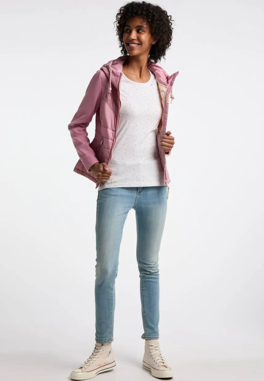 Perfekt für die Übergangszeit: Die vegane Jacke ‚LUCINDA‘ von ragwear ist ein Outdoor-Highlight für alle Trekking-Fans. Die Übergangsjacke ist besonders für den Frühling oder kühle Sommerabende geeignet. Dabei fällt der coole Materialmix sofort ins Auge. Vorn und hinten ist die Jacke leicht gefüttert und gesteppt, die Ärmel setzten sich ab. Dazu gibt es eine Kapuze mit Tunnelzug und Kordel und seitliche Reißverschlusstaschen. Der taillierte Schnitt wirkt feminin und begleitet Dich schick auf die nächste Wanderung.