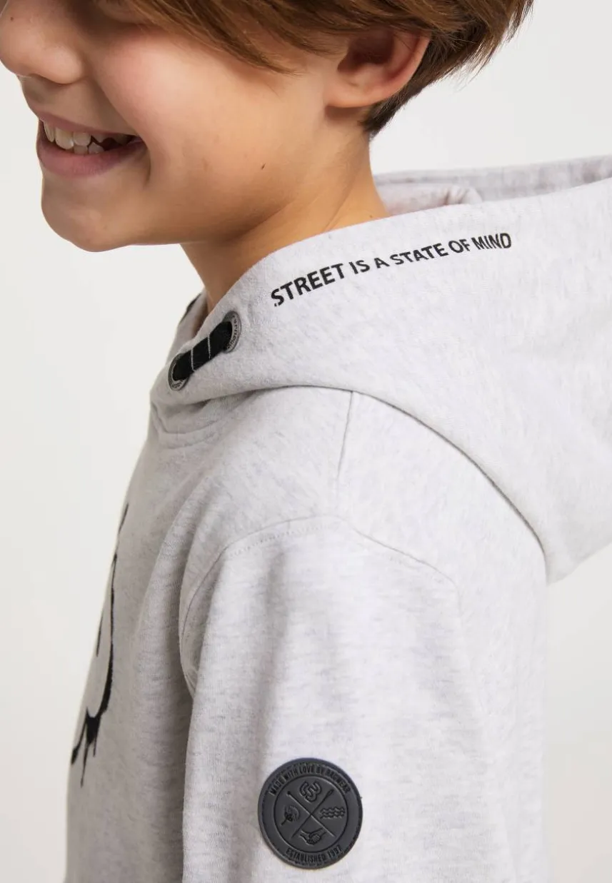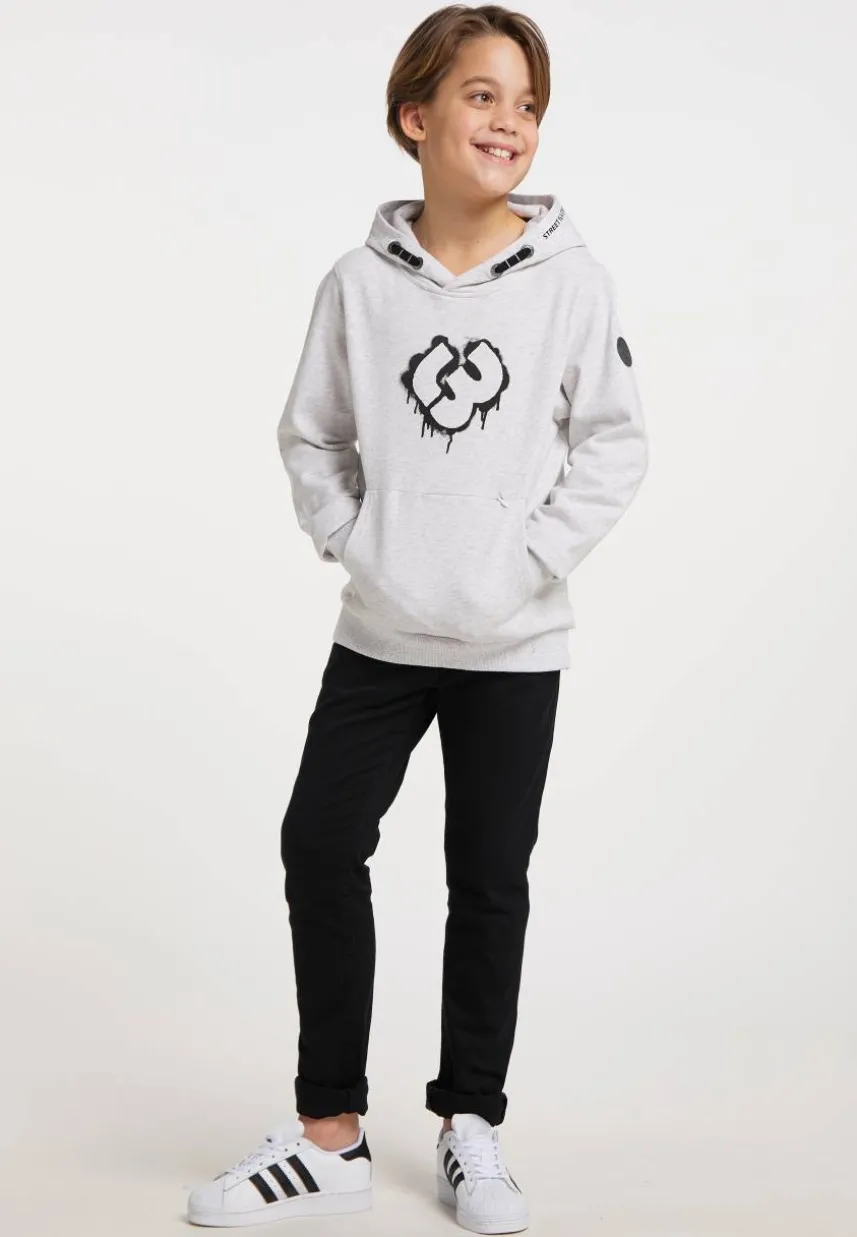 • Kapuze mit Tunnelzug und Kordel, sowie Slogan