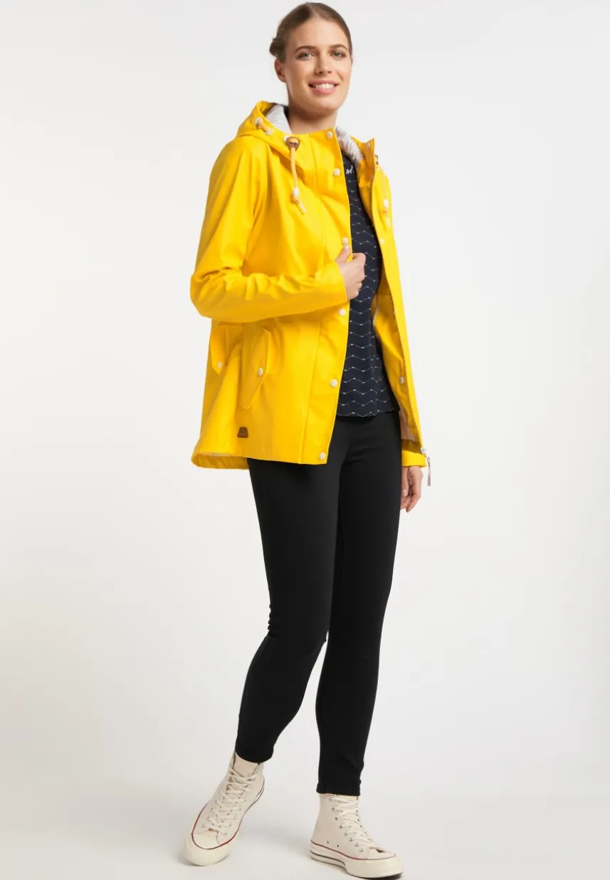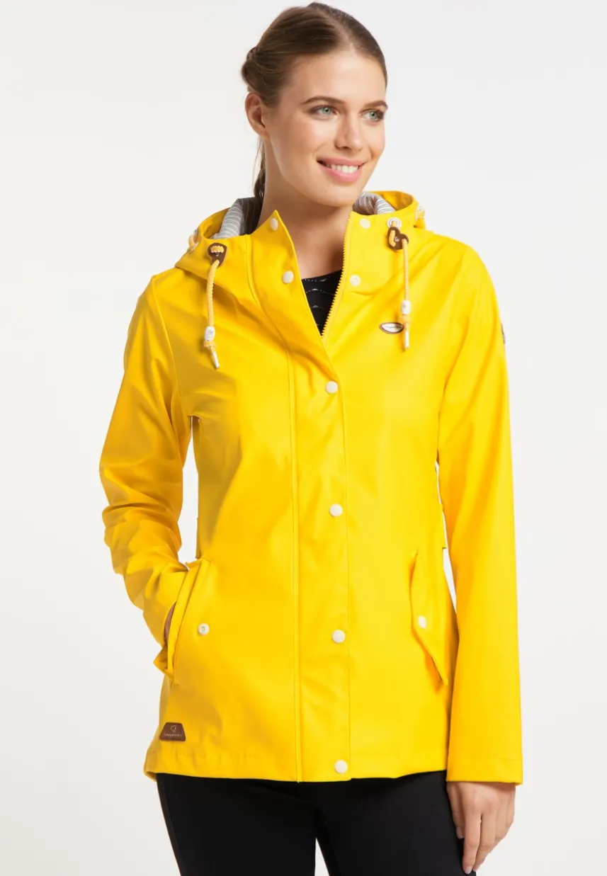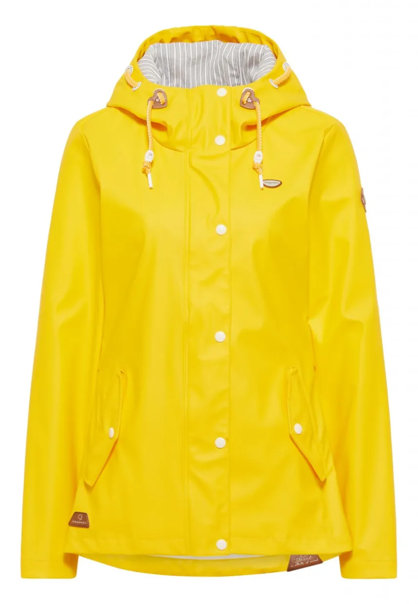 Ab jetzt kann Dir schlechtes Wetter nichts mehr anhaben! Die vegane Jacke ´MARGE` von ragwear besteht aus einem wasserfestem Material und hat geschweißte Nähte. Dadurch bringt sie Dich trocken durch jeden Regen. Geschlossen wird die Regenjacke mit einem durchgehenden Reißverschluss, der sich unter einer Druckknopfleiste befindet. Die Kapuze mit Kordel ist mit einem gestreiften Stoff gefüttert und schützt Kopf und Nacken. In den praktischen Klappentaschen mit Druckknöpfen kannst Du alles Wichtige verstauen.