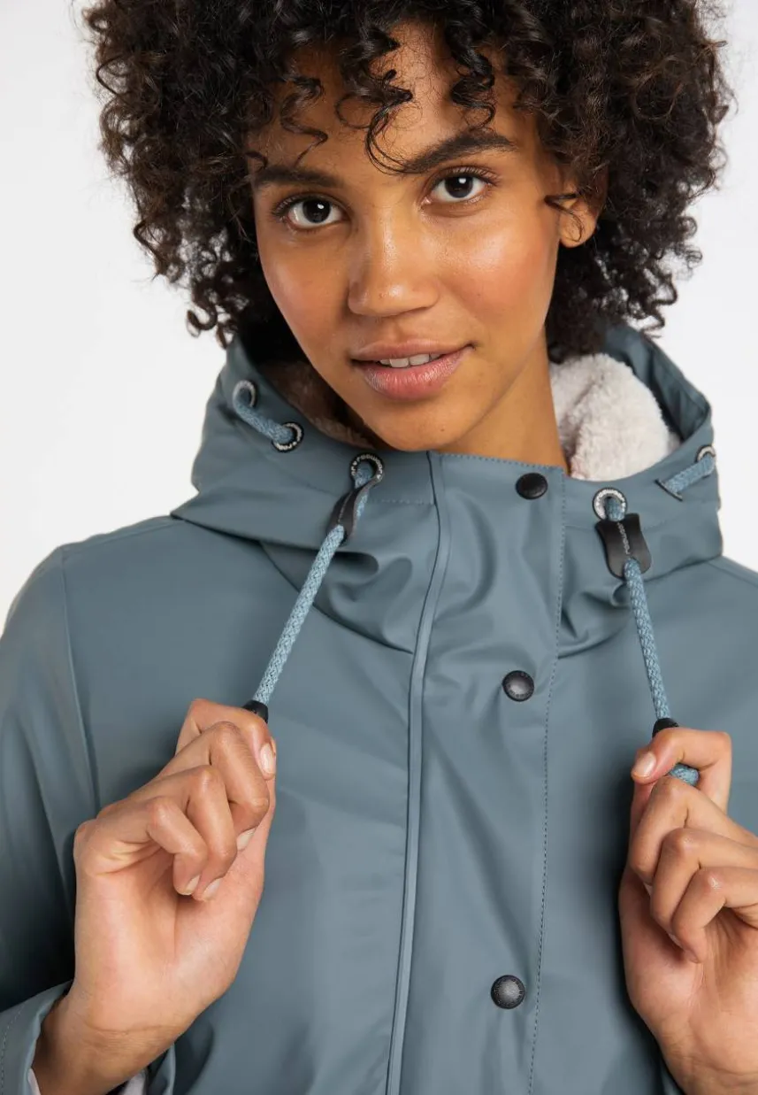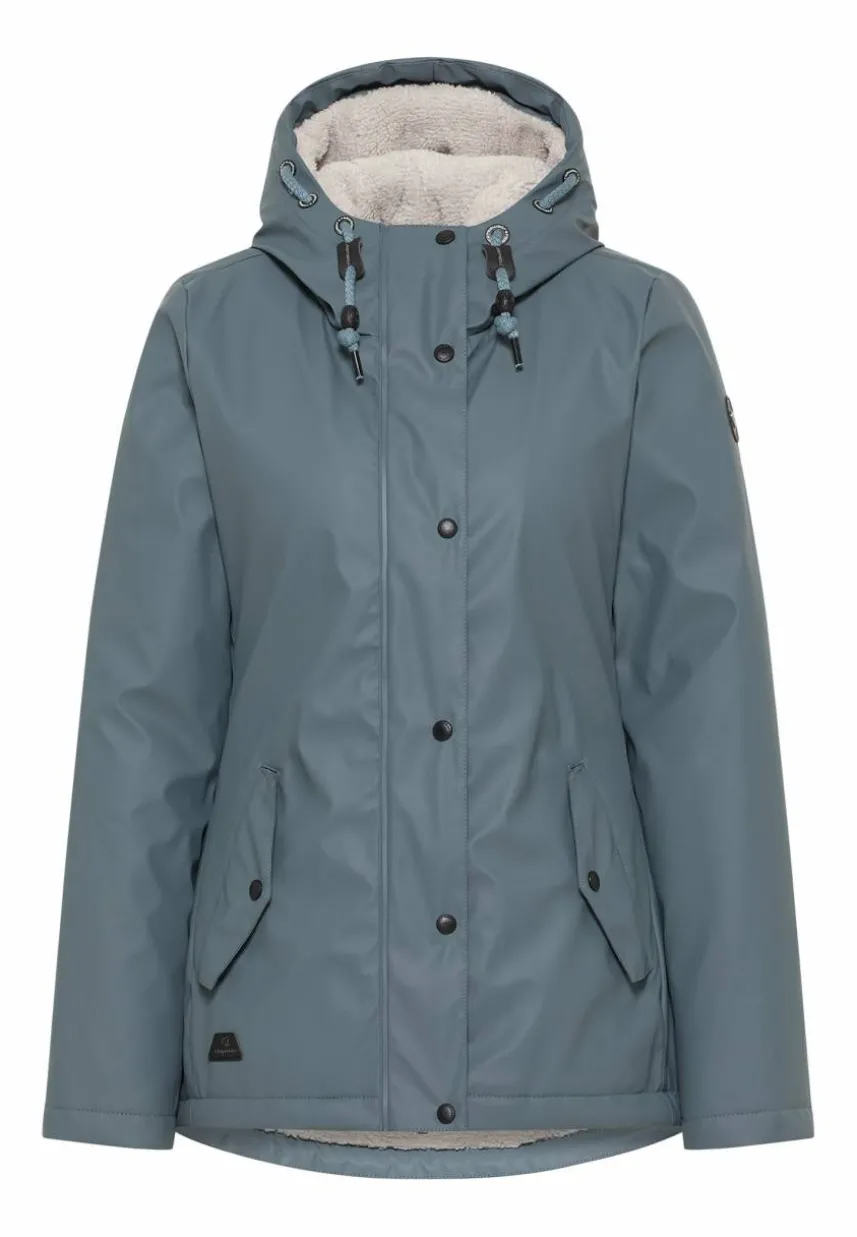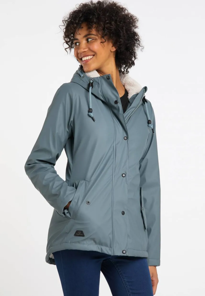 Die vegane Regenjacke ´MARGGE` von ragwear besteht aus einem wasserabweisenden Material und bringt Dich mit ihren abgedichteten Nähten trocken durch Regen und Schneeschauer. Gefüttert mit kuscheligem Teddy-Fell ist sie Dir in der Übergangszeit und im Herbst ein zuverlässiger Begleiter. Geschlossen wird sie mit einem durchgehenden Reißverschluss, der sich unter einer Druckknopfblende befindet. Die Kapuze mit Teddy-Futter und Kordel schützt Kopf und Nacken. In den praktischen Klappentaschen mit Druckknopf kannst Du alles Wichtige verstauen. Die Jacke ist bequem geschnitten mit geknöpften Riegeln im Rücken. Unter den Armen befinden sich kleine Belüftungslöcher.