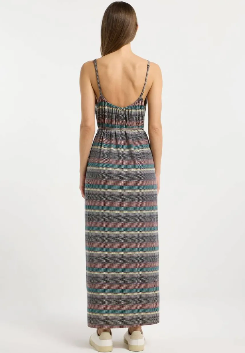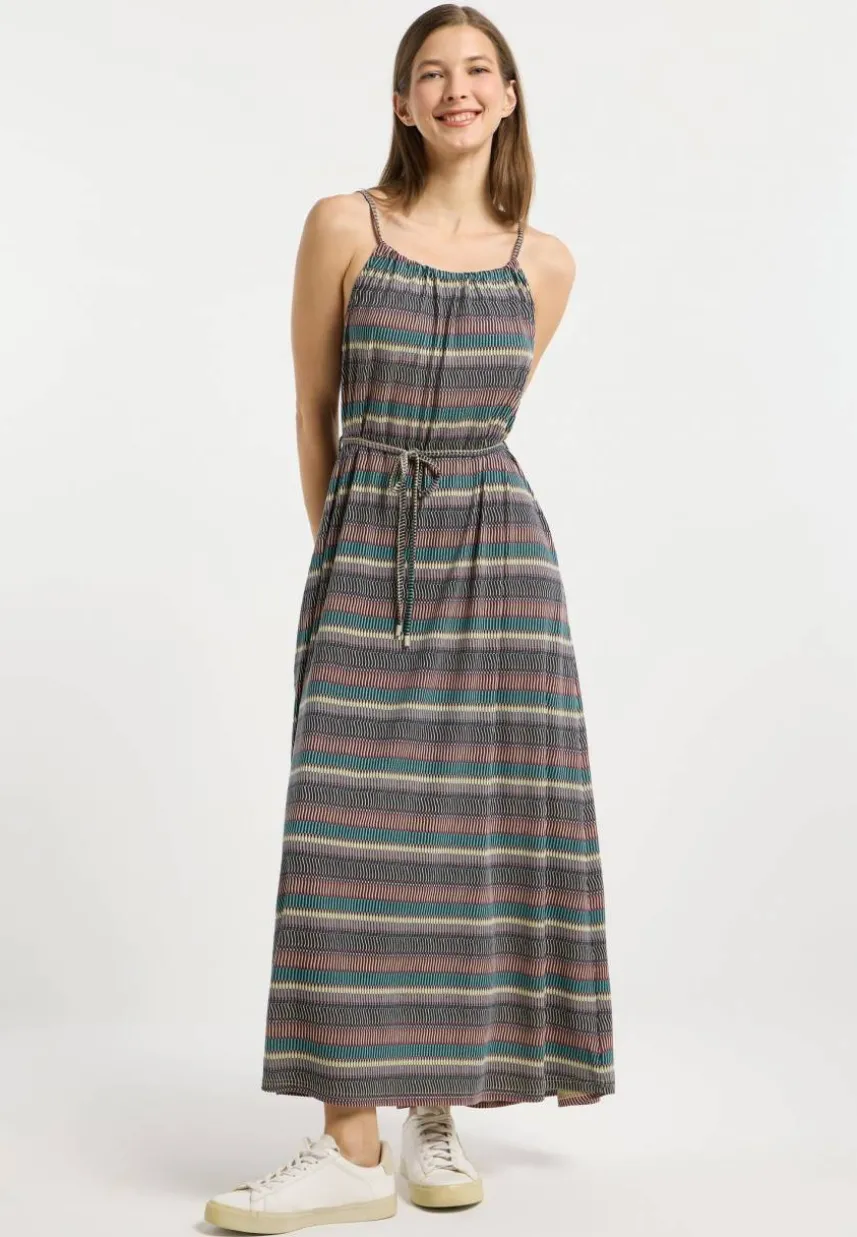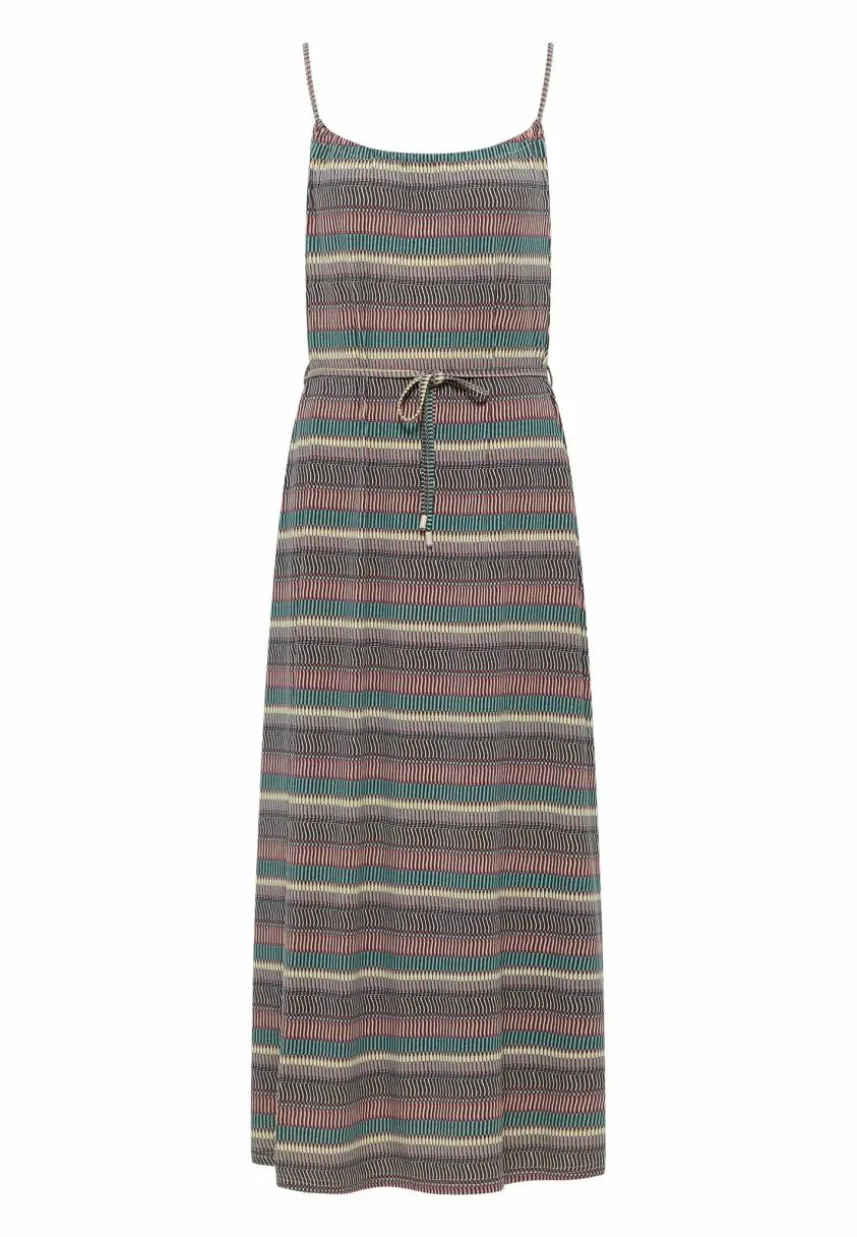 Lass deinen inneren Freigeist erstrahlen mit dem Kleid MARSALI von ragwear. Das Sein boho-esques Design sorgt dafür, dass du dich den ganzen Sommer über unbeschwert fühlst, während das abstrakte Streifenmuster ein Statement macht, sobald du aus der Tür trittst. In diesem knöchellangen Kleid bleibst du dank der dünnen Träger und des tiefen Rückenausschnitts den ganzen Sommer über cool.