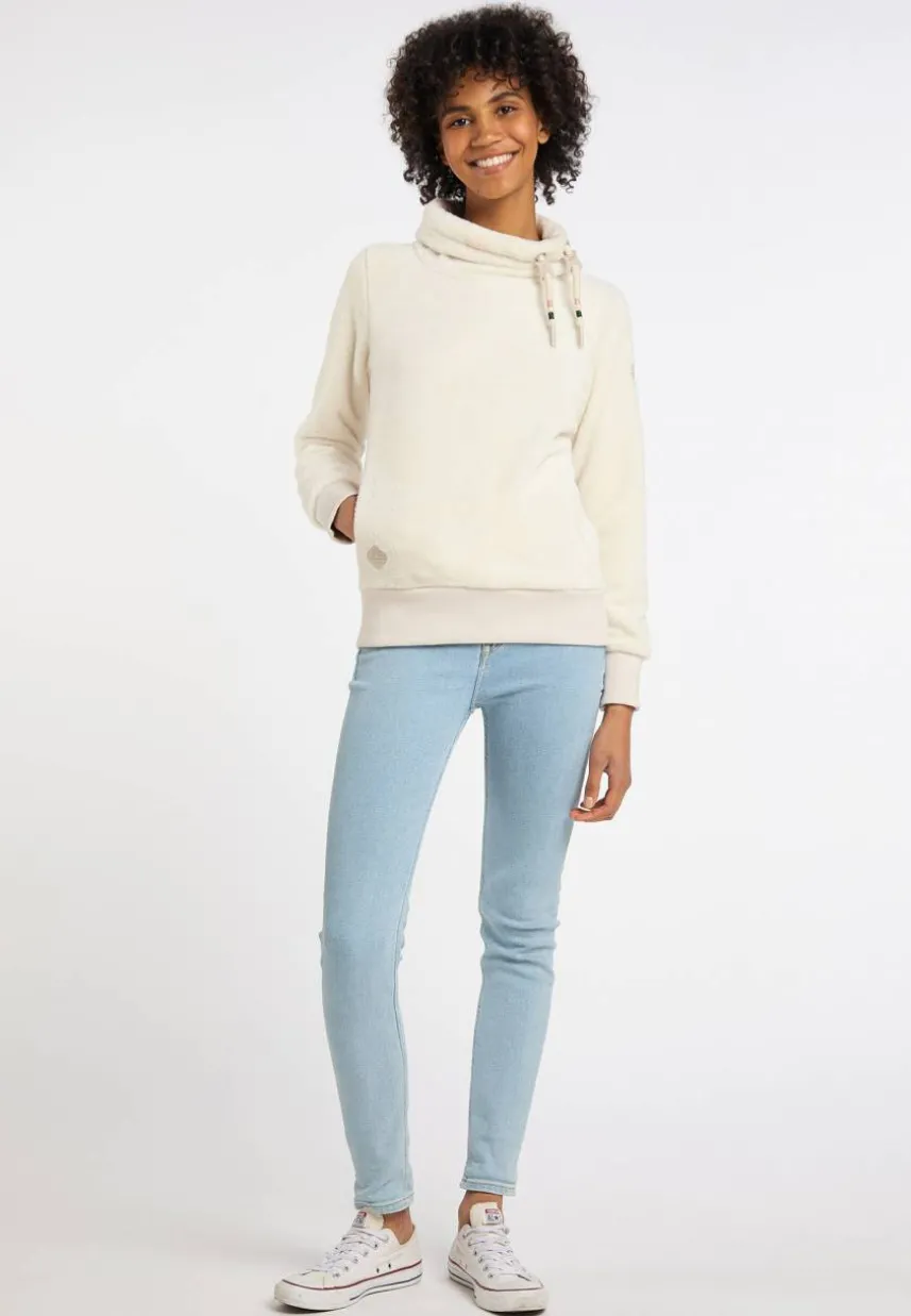 Lasst uns kuscheln! Der vegane Sweater ´MENNY` von ragwear ist genau dafür gemacht! Der kuschelige Teddystoff ist einfach himmlisch weich. Auch der gerade Schnitt, die seitlichen Eingrifftaschen und der Schalkragen mit Kordel sorgen für den Komfort, den Du Dir in der kalten Jahreszeit wünschst. Rippstrickbündchen an den Ärmeln und dem Saum ergänzen das alltagstaugliche Design. Ob nun in Kombination mit einer lässigen Jeans oder ganz gemütlich mit Sweatpants auf der Couch, dieser Pullover passt einfach.