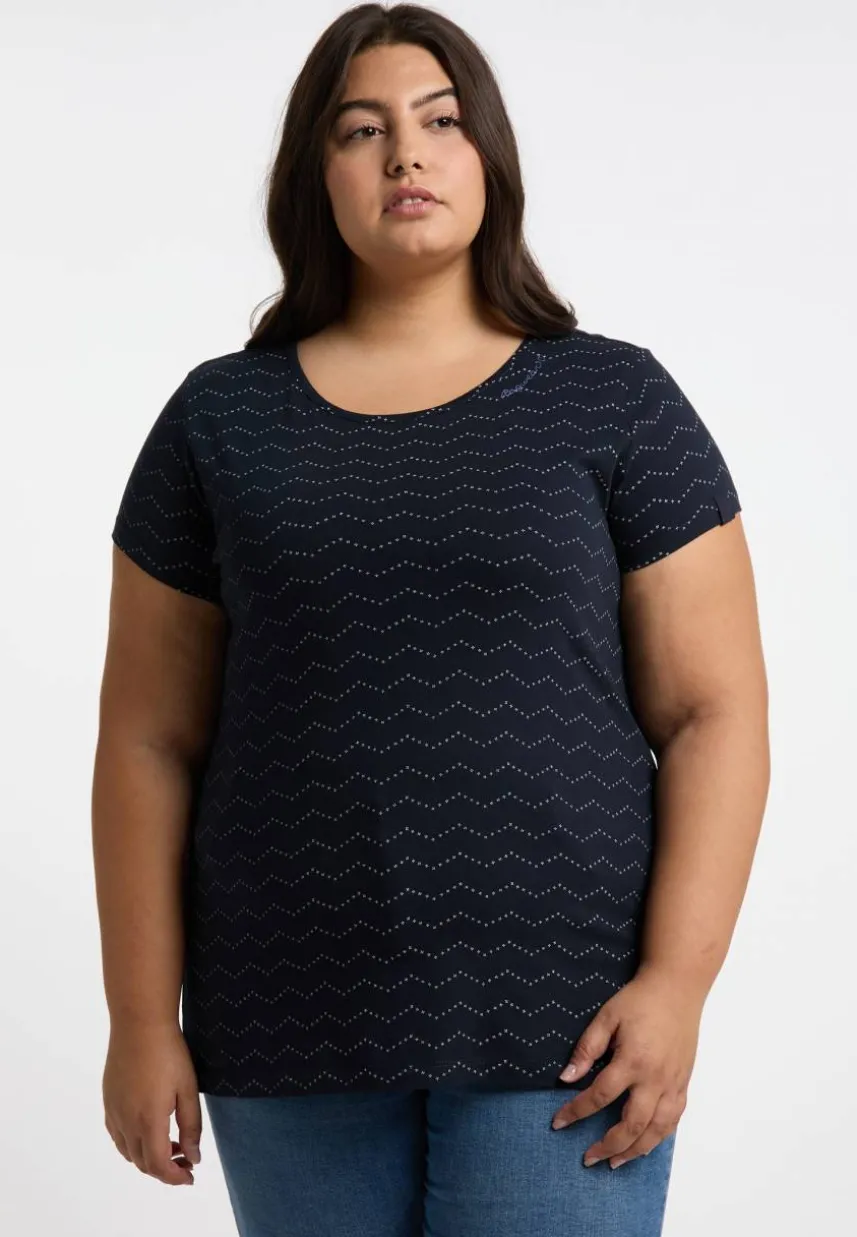 In dem veganen T-Shirt ‚MINTT ZIG ZAG PLUS‘ von ragwear kommst Du nicht ins Schwitzen. Dafür sorgen das leichte Material aus Baumwolle, sowie die bequeme Passform mit hinten verlängertem Saum. Die kurzen Ärmeln und der große Rundhalsausschnitt mit ragwear-Schriftzug sind hübsche Details. Dazu ist das T-Shirt mit einem Muster aus Ginko Blättern bedruckt. So startest Du stylisch und beschwingt in die warme Jahreszeit.