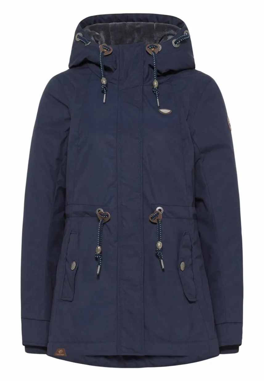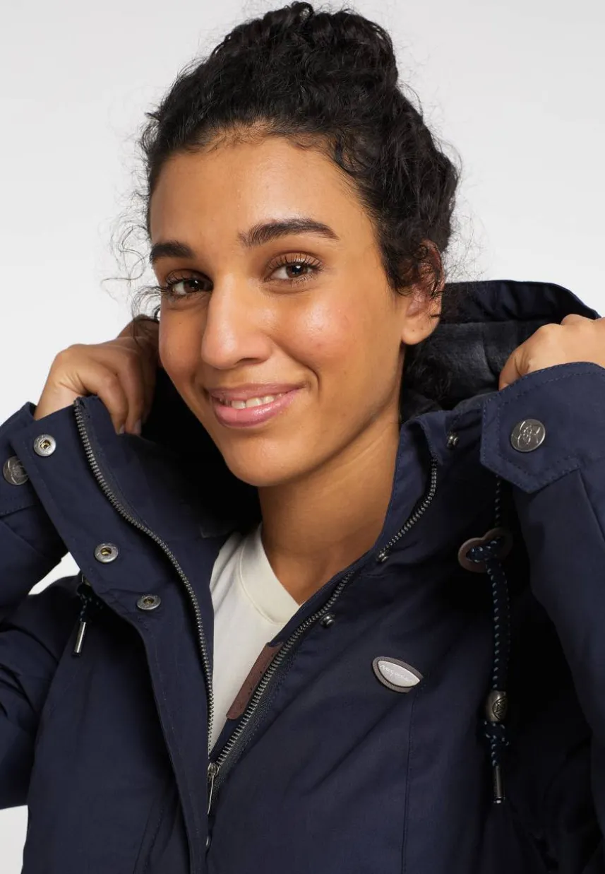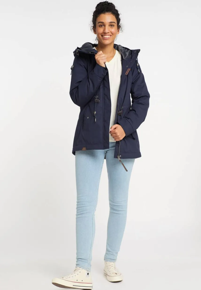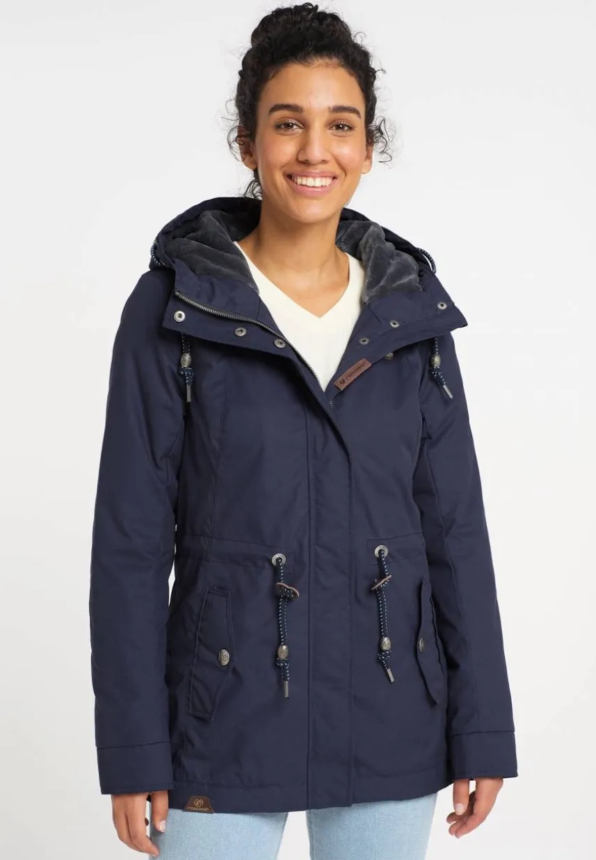 Mit der veganen Jacke ´MONADIS` von ragwear trägst Du einen femininen Freizeitlook für die Übergangszeit. Der gerade Schnitt mit leicht ausgestelltem Saum und der, mit einer Kordel weitenverstellbaren, Taille schmeichelt die längere Jacke Deiner Figur. Auch die hochgeschnittene, mit einem kuscheligen Teddy-Futter gefütterte Kapuze ist mit einer Kordel versehen. Schräge Klappentaschen mit Druckknopf und Label-Applikationen ergänzen das Casual-Design der Übergangsjacke.