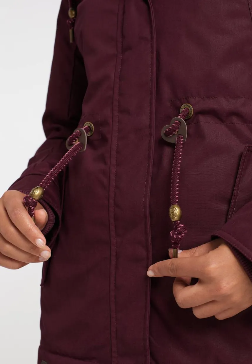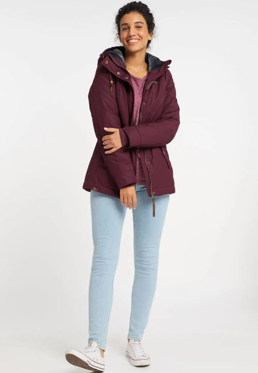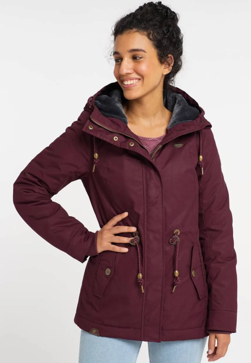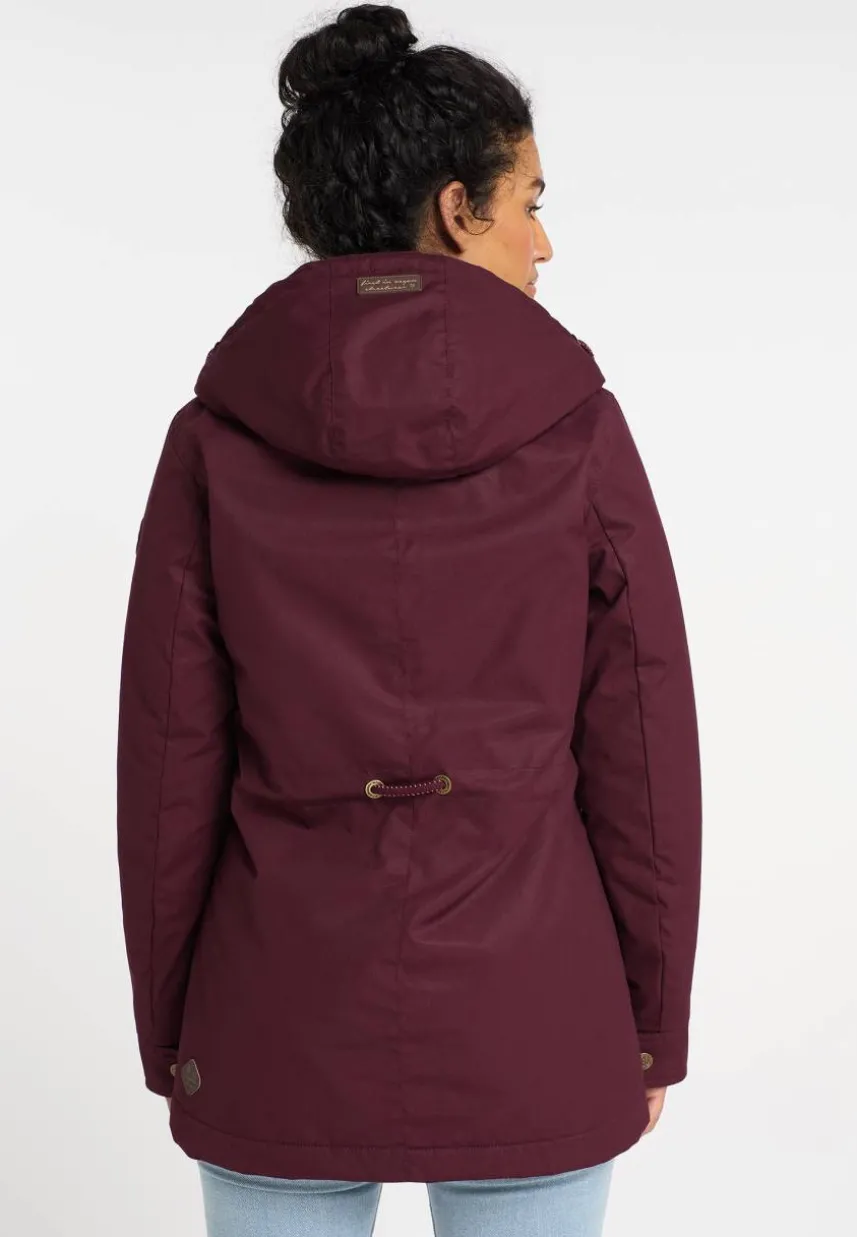 Mit der veganen Jacke ´MONADIS` von ragwear trägst Du einen femininen Freizeitlook für die Übergangszeit. Der gerade Schnitt mit leicht ausgestelltem Saum und der, mit einer Kordel weitenverstellbaren, Taille schmeichelt die längere Jacke Deiner Figur. Auch die hochgeschnittene, mit einem kuscheligen Teddy-Futter gefütterte Kapuze ist mit einer Kordel versehen. Schräge Klappentaschen mit Druckknopf und Label-Applikationen ergänzen das Casual-Design der Übergangsjacke.