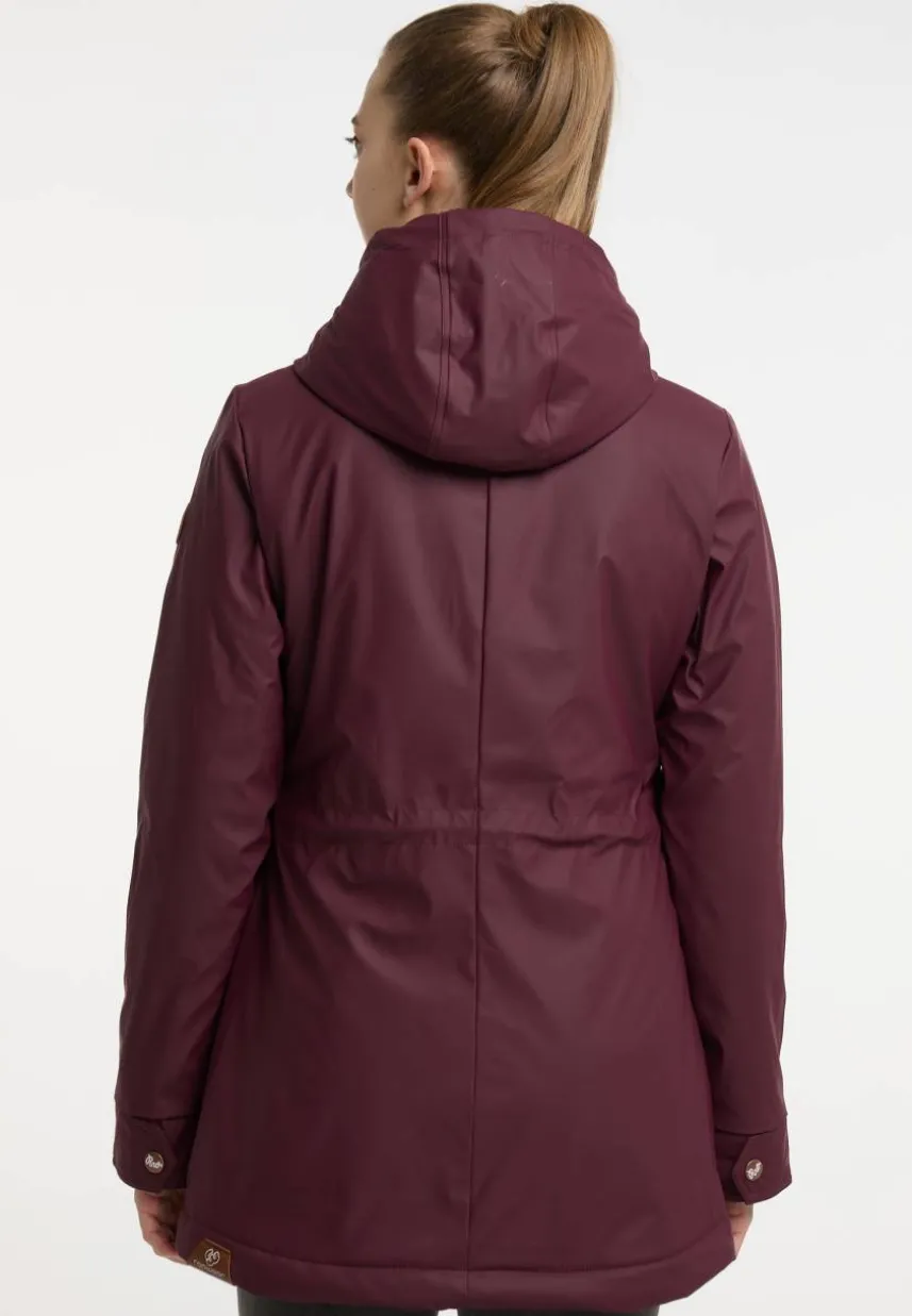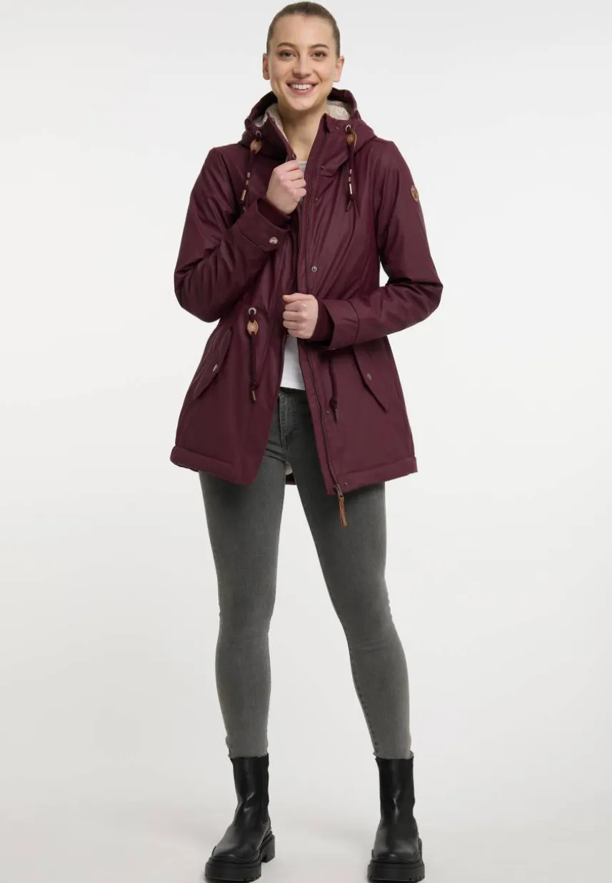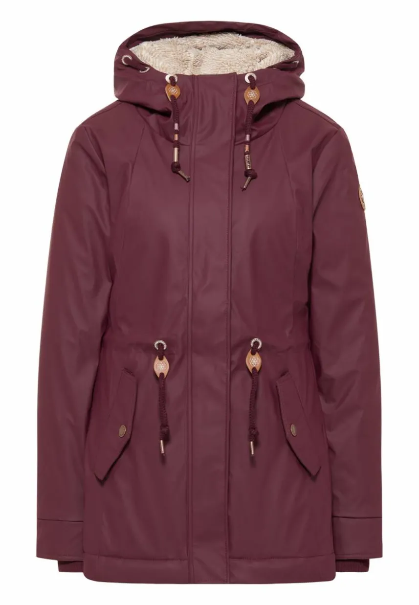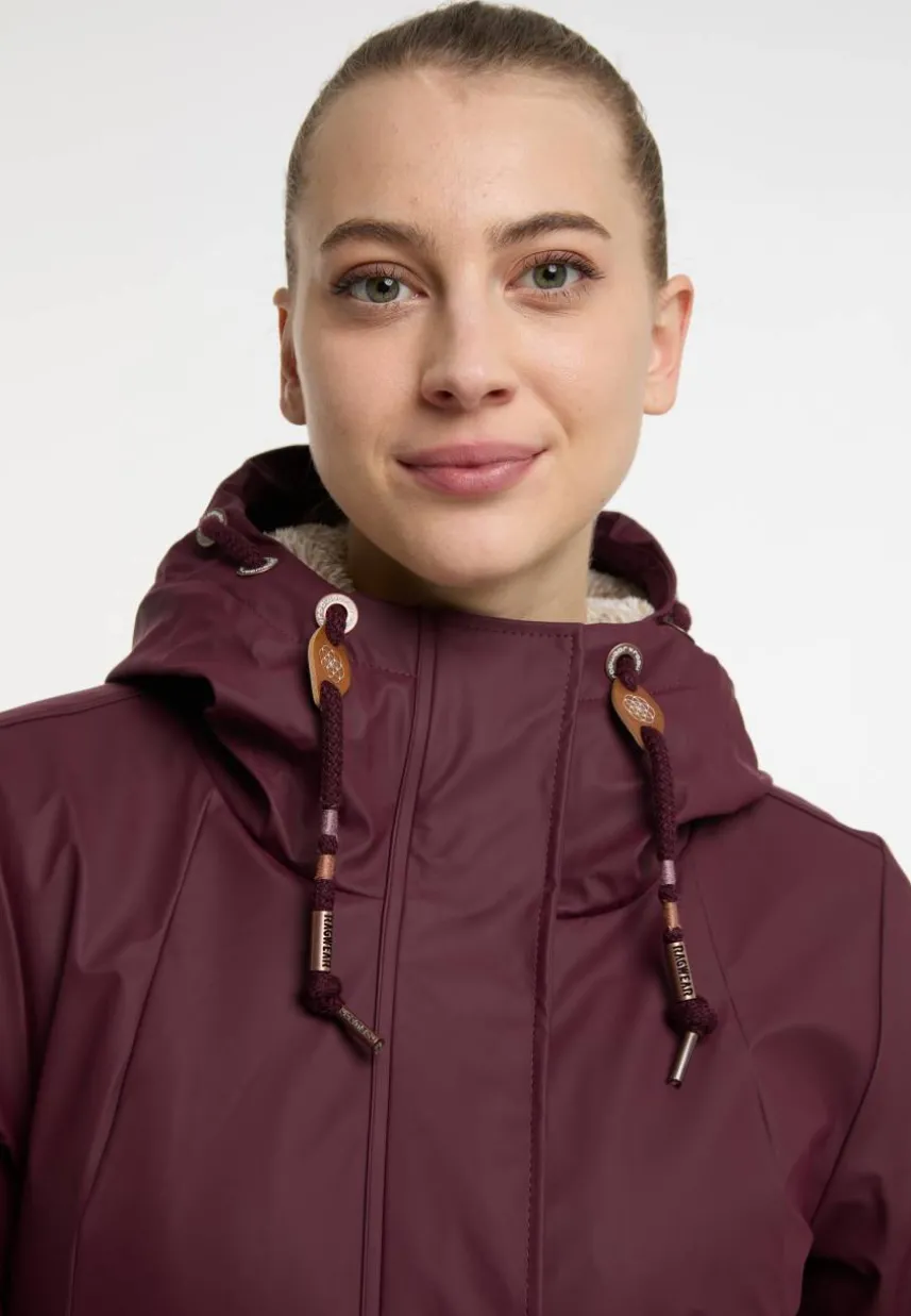 Die Regenjacke ´MONADIS RAINY` von ragwear begeistert sowohl mit hübschen Details als auch mit einer tollen Ausstattung und Funktionalität. Die Jacke ist wasserdicht und das kuschelige Teddy-Futter reicht bis in die Kapuze, um Dich auch an kalten Herbsttagen angenehm warm zu halten. Durch den Tunnelzug auf Taillenhöhe kannst Du die Silhouette individuell festlegen. Für Handy, Geldbörse und Schlüssel gibt es in den seitlichen Klappentaschen mit Druckknopf genügend Platz. An den Ärmelabschlüssen sorgen elastische Bündchen für einen guten Halt. Unter den Armen befinden sich kleine Belüftungslöcher.