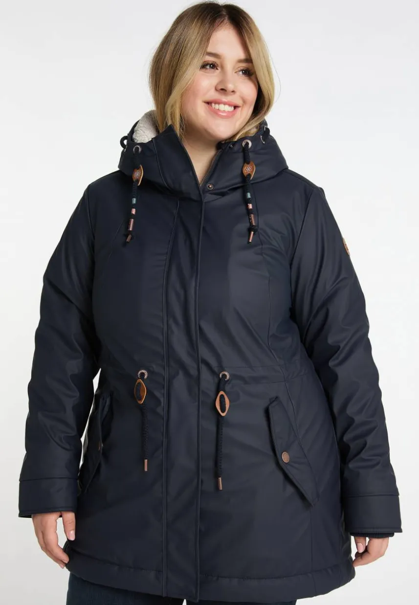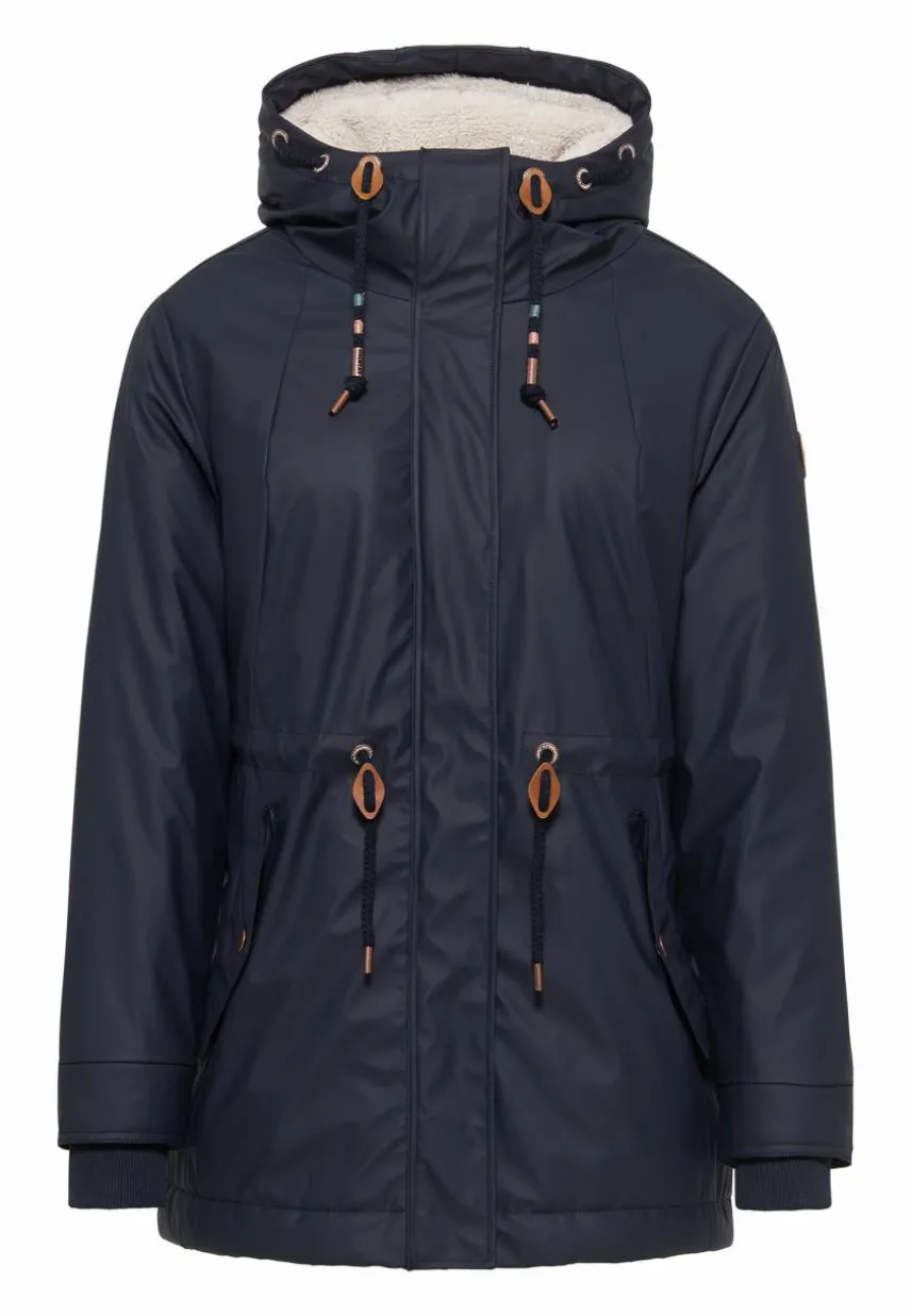 Die vegane Regenjacke ´MONADIS RAINY PLUS` von ragwear begeistert sowohl mit einer tollen Ausstattung als auch Funktionalität. Die wasserdichte, etwas längere Jacke ist mit einem kuschelige Teddy-Futter gefüttert und hält Dich an kalten Herbst- und milderen Wintertagen angenehm warm und trocken. Durch den Tunnelzug auf Taillenhöhe kannst Du die Silhouette der Jacke ganz individuell anpassen. Eine weitere Kordel befindet sich in der gemütlichen, gefütterten Kapuze. Weitere, praktische Features sind die seitlichen Klappentaschen und die elastischen Bündchen an den Ärmelabschlüssen.